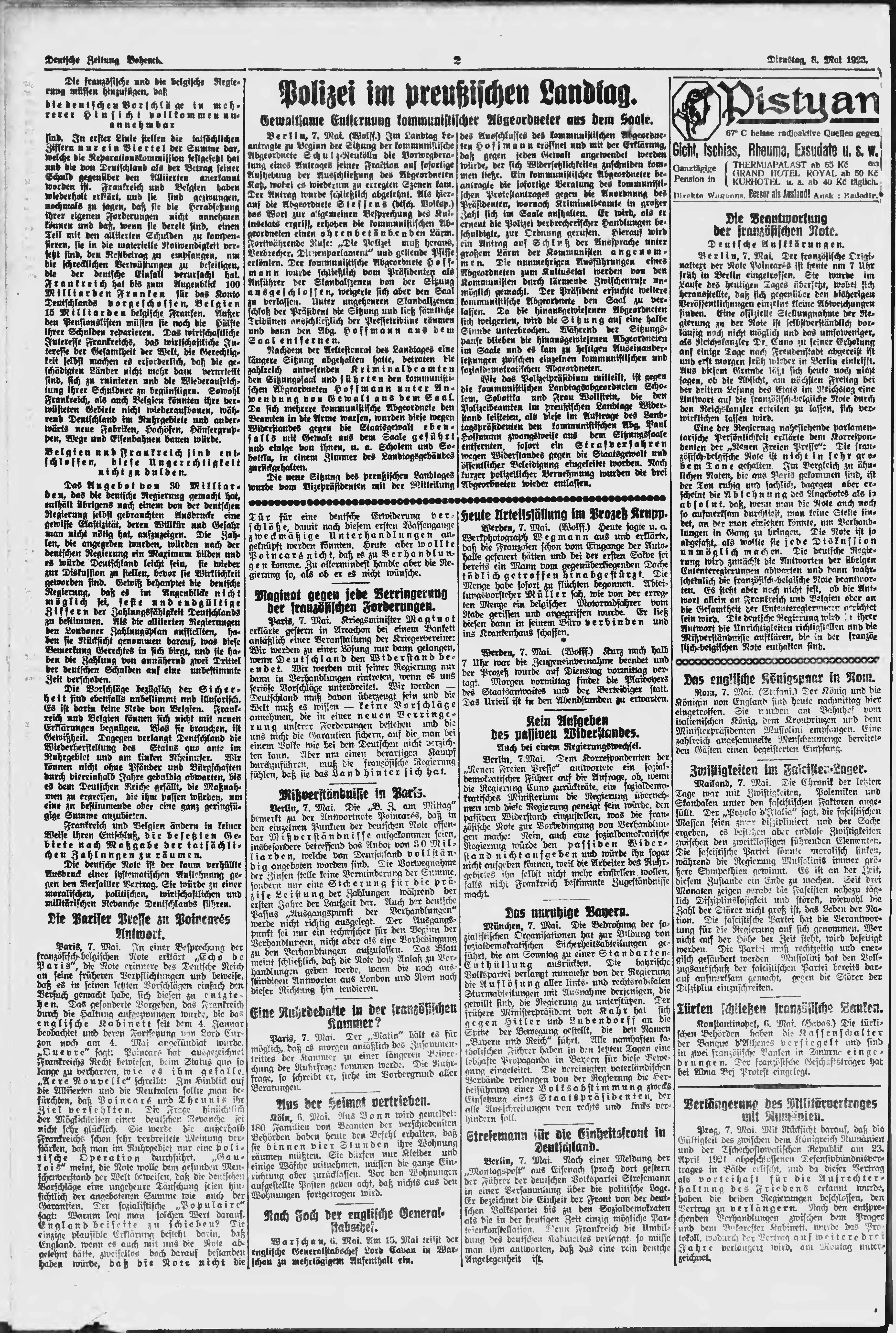 * Datum vydání výtisku: 8.5.1923 Číslo výtisku: 105 Poznámky k výtisku: ranní vydání;