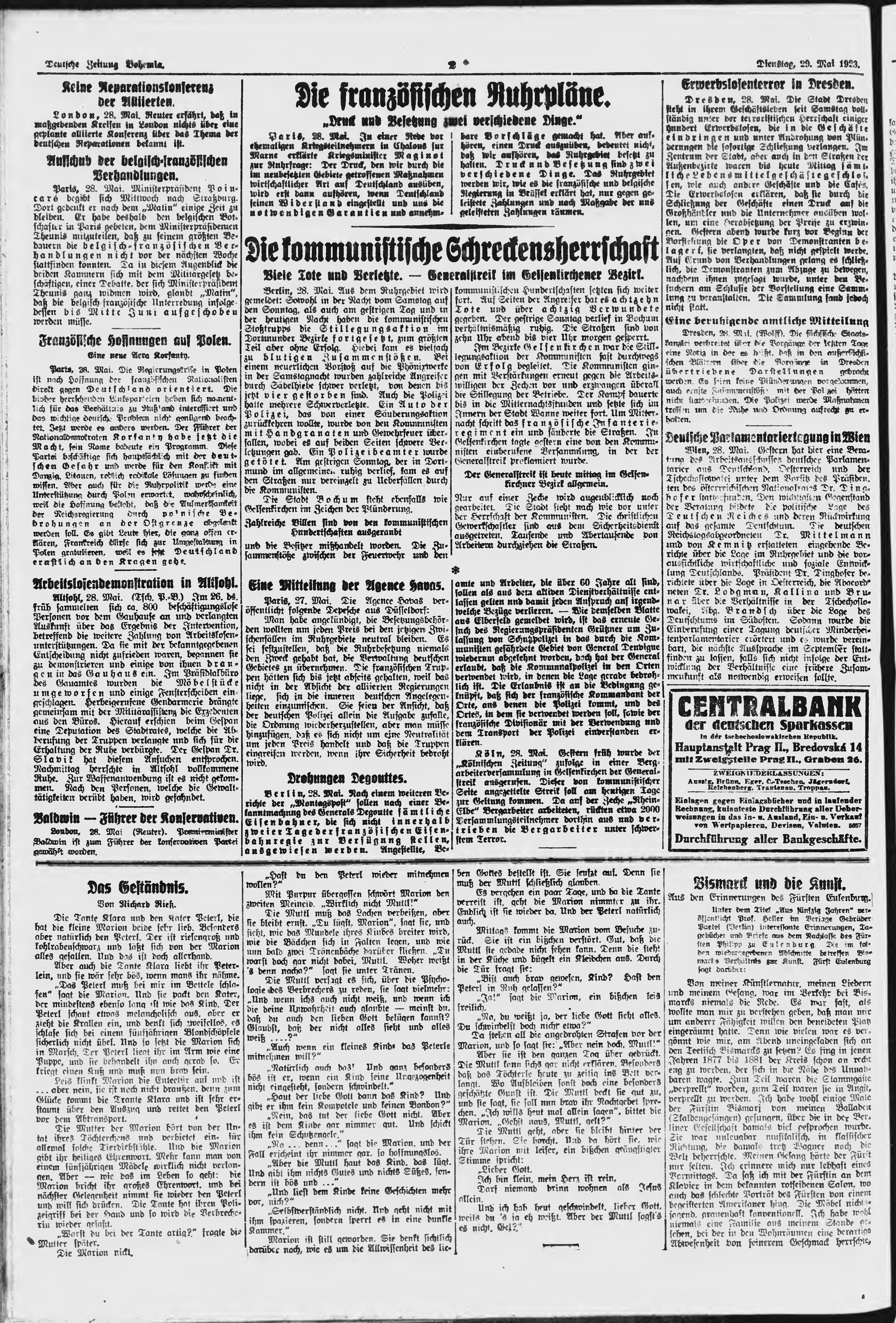 * Datum vydání výtisku: 29.5.1923 Číslo výtisku: 122 Poznámky k výtisku: ranní vydání;