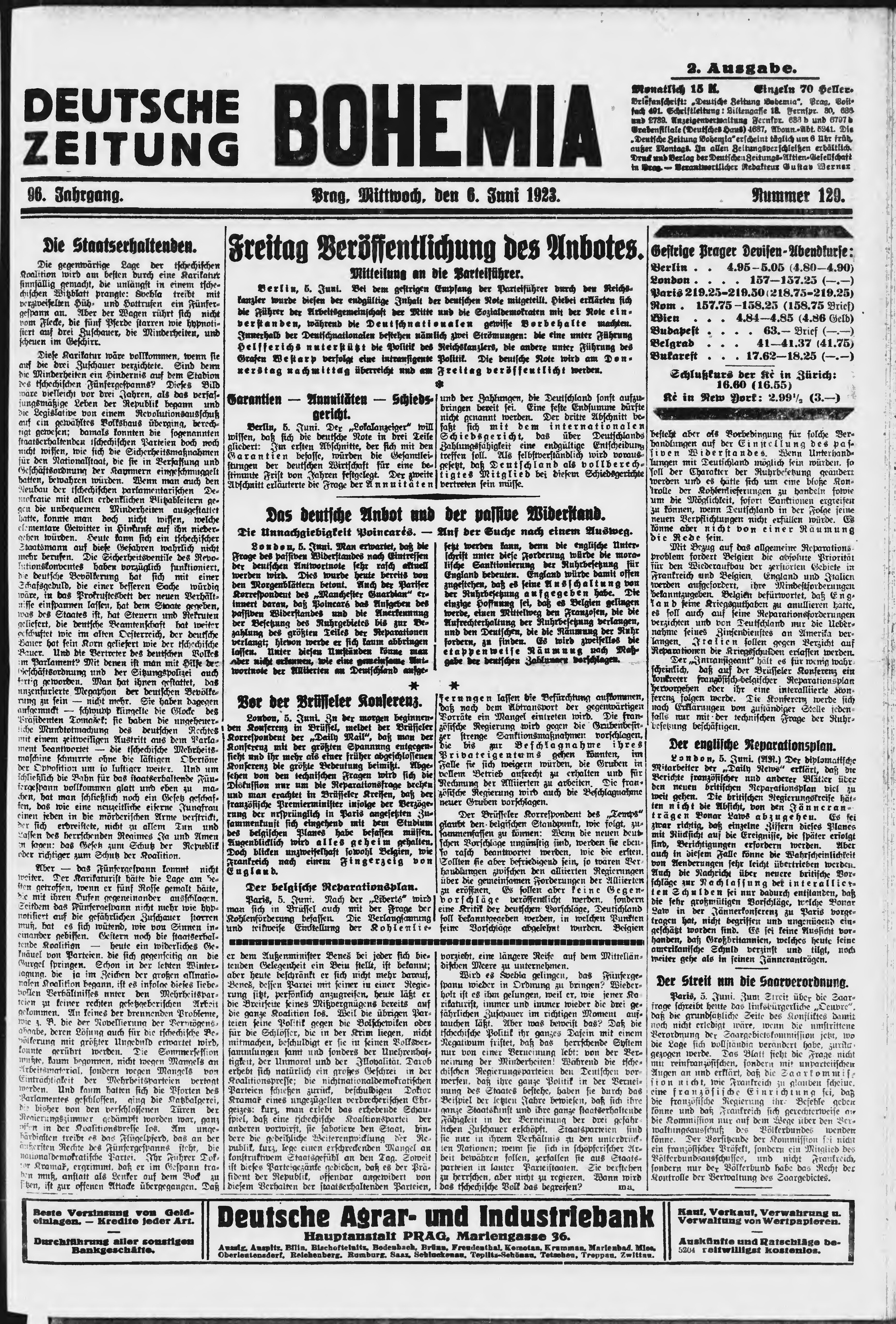 * Datum vydání výtisku: 6.6.1923 Číslo výtisku: 129 Poznámky k výtisku: ranní vydání;