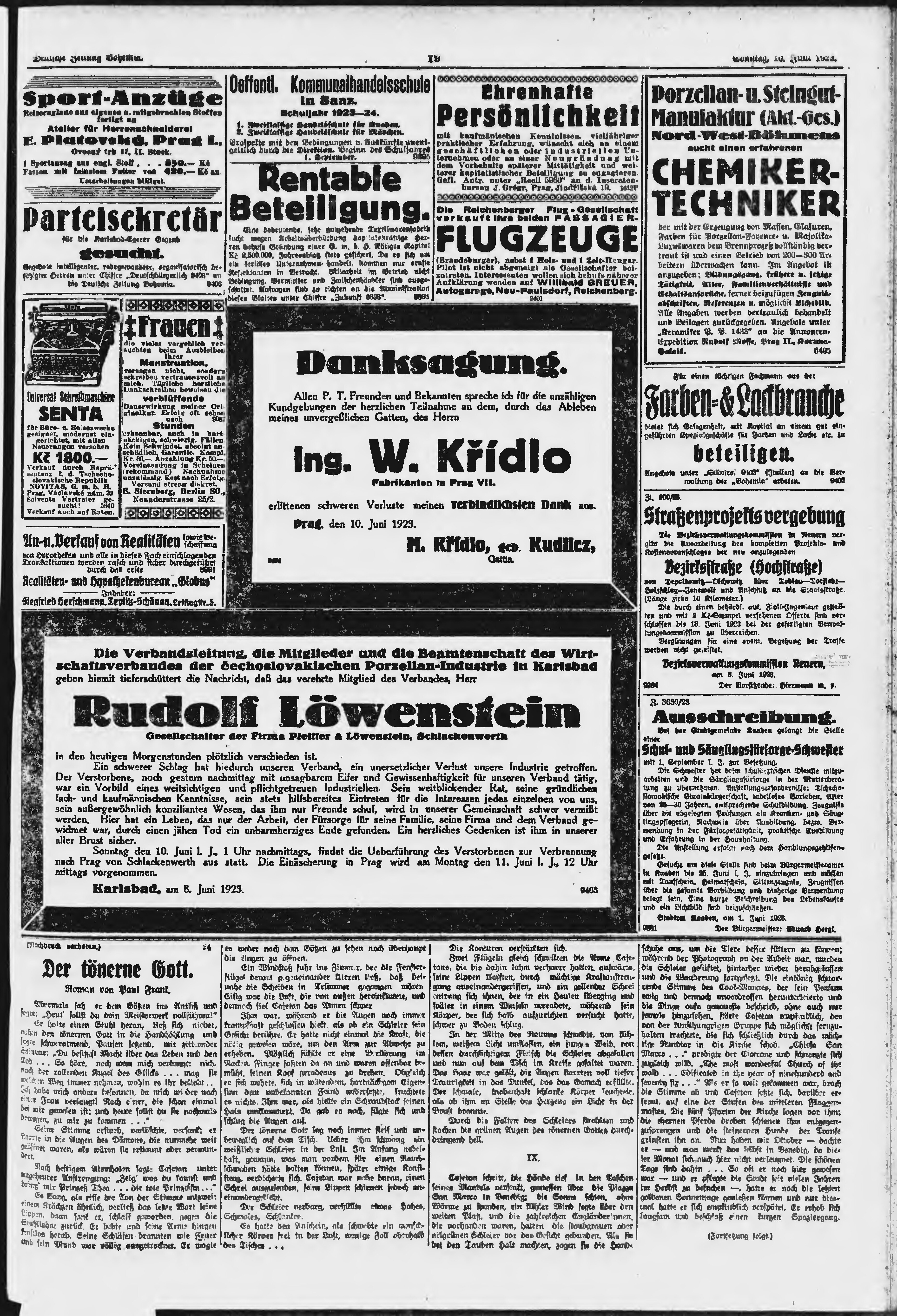 * Datum vydání výtisku: 10.6.1923 Číslo výtisku: 133 Poznámky k výtisku: ranní vydání;