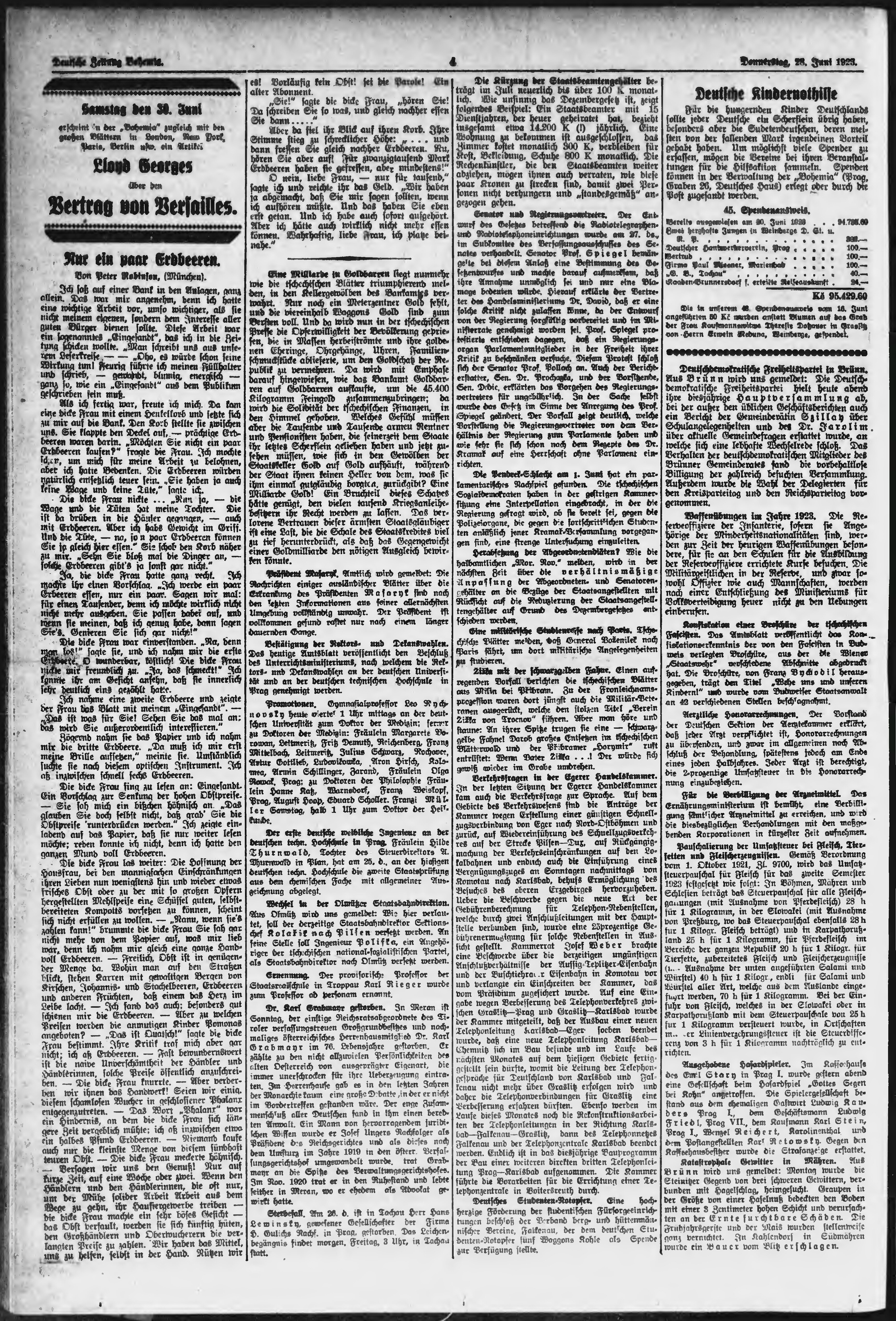 * Datum vydání výtisku: 28.6.1923 Číslo výtisku: 148 Poznámky k výtisku: ranní vydání;