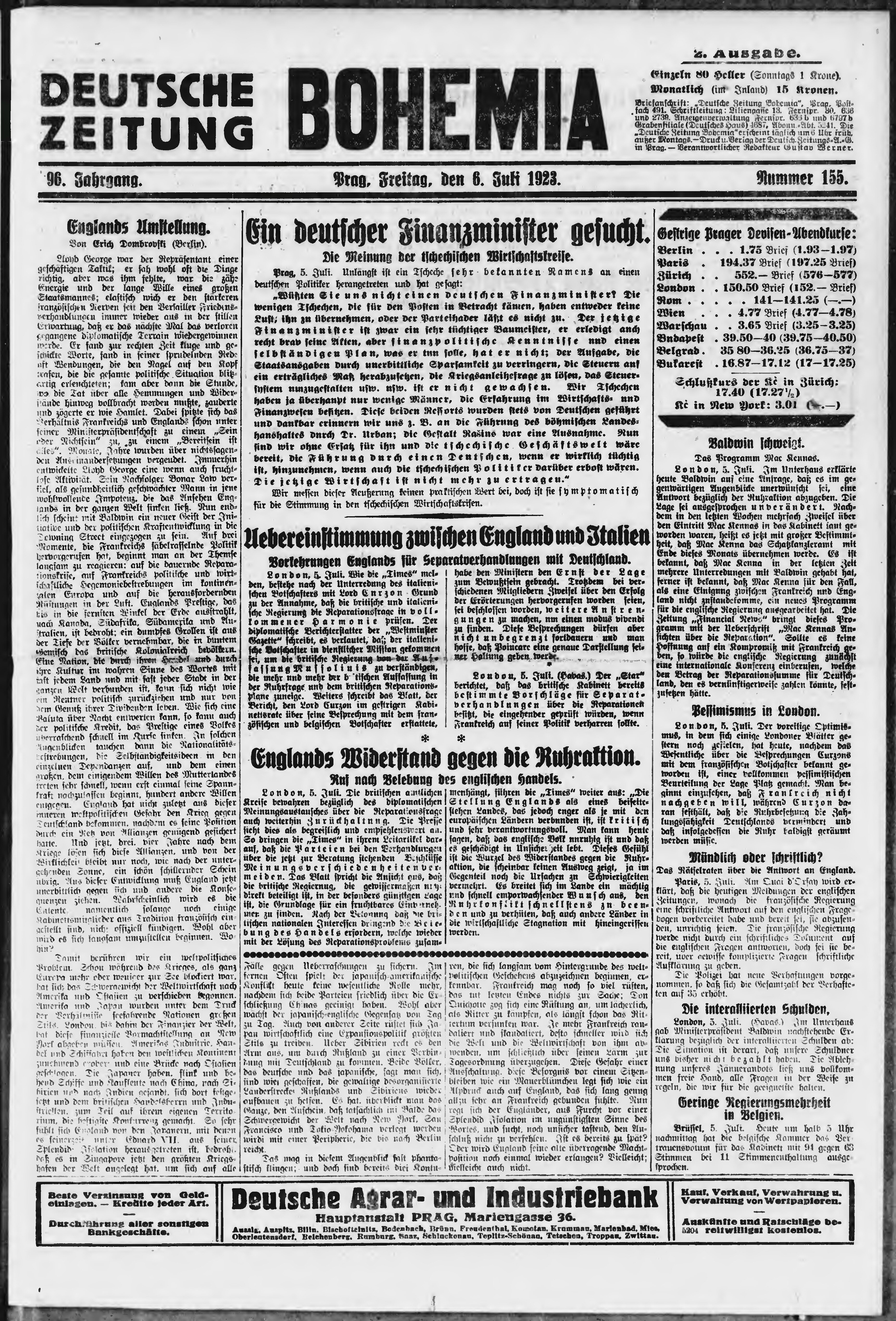 * Datum vydání výtisku: 6.7.1923 Číslo výtisku: 155 Poznámky k výtisku: ranní vydání;