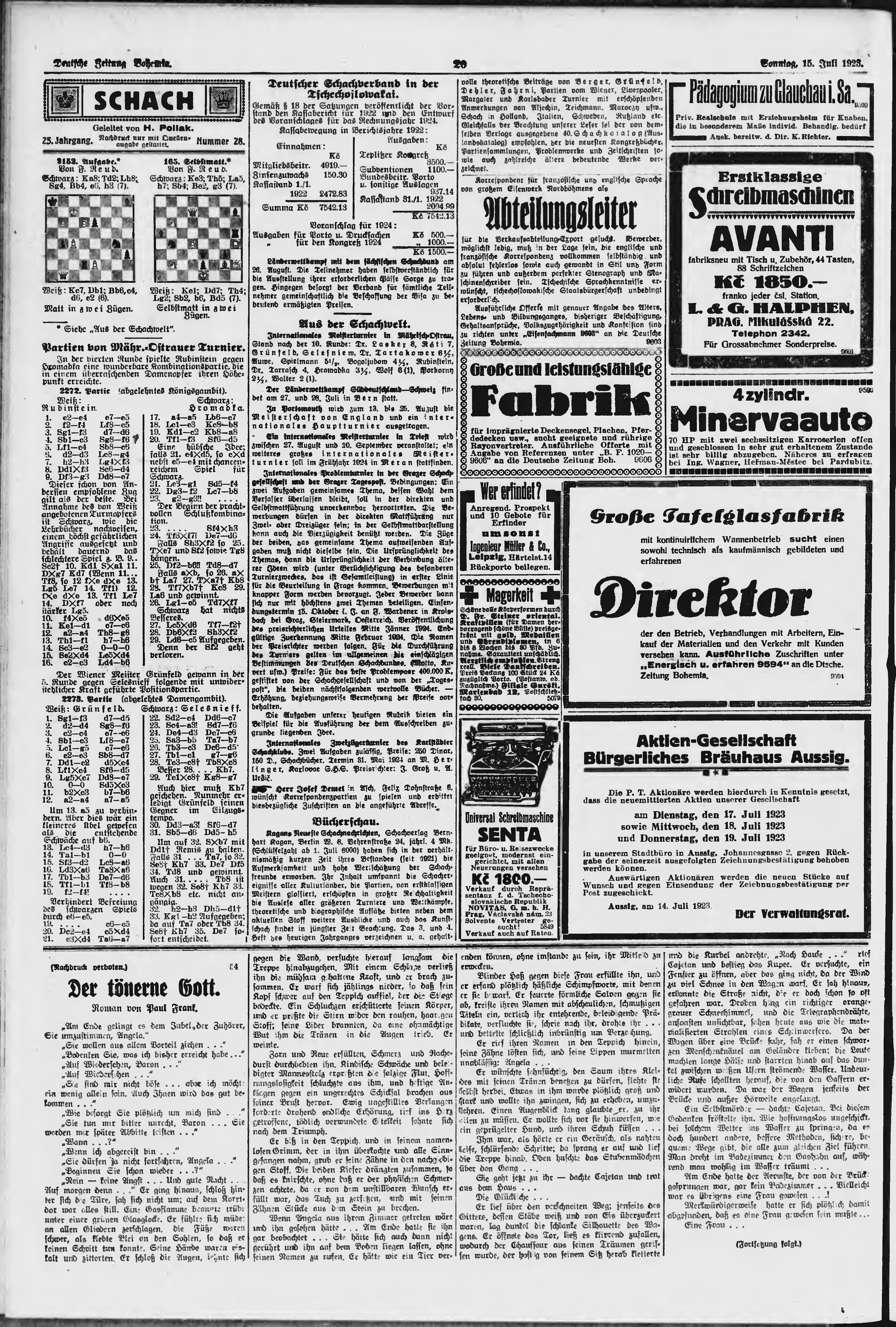 * Datum vydání výtisku: 15.7.1923 Číslo výtisku: 163 Poznámky k výtisku: ranní vydání;