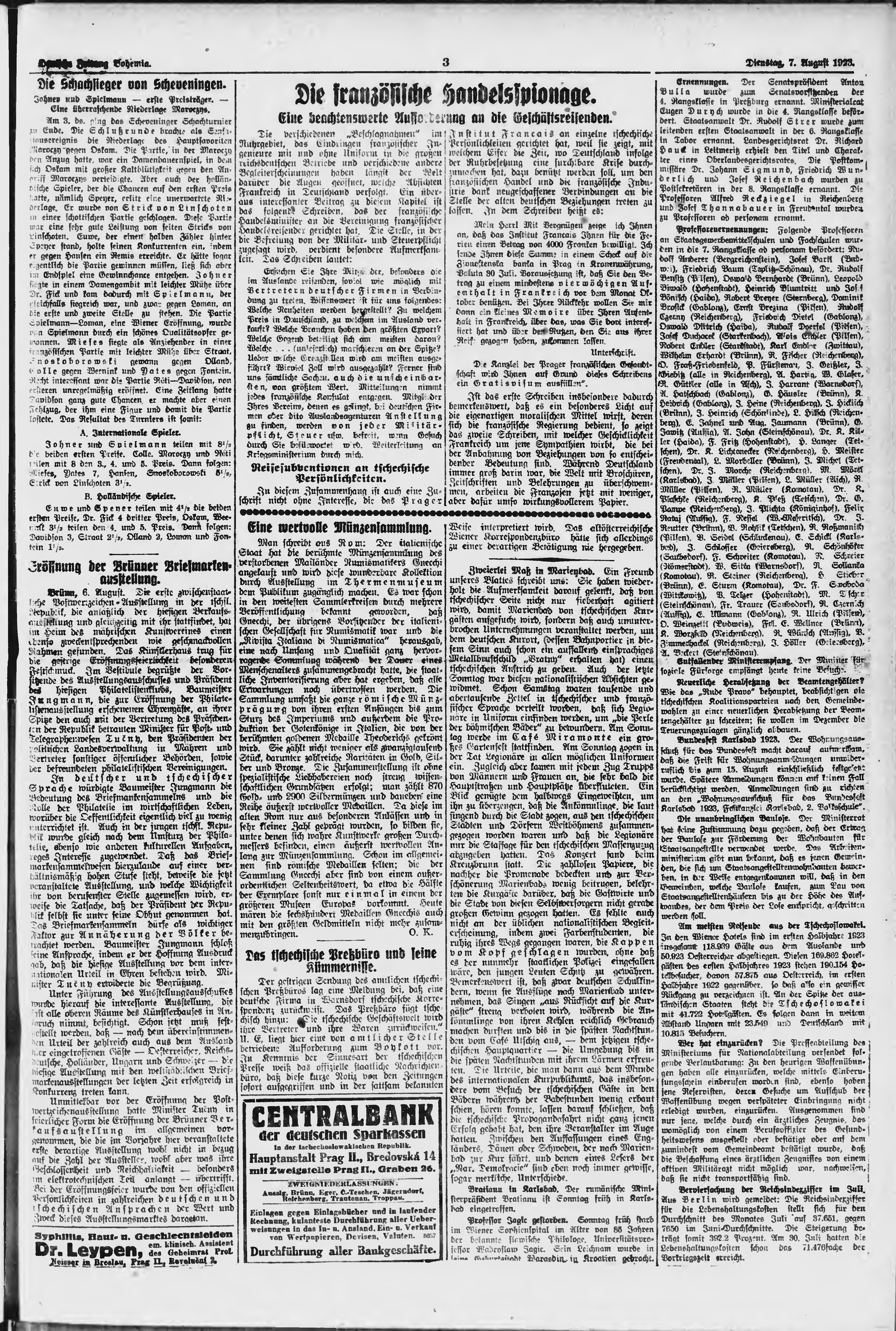 * Datum vydání výtisku: 7.8.1923 Číslo výtisku: 182 Poznámky k výtisku: ranní vydání;