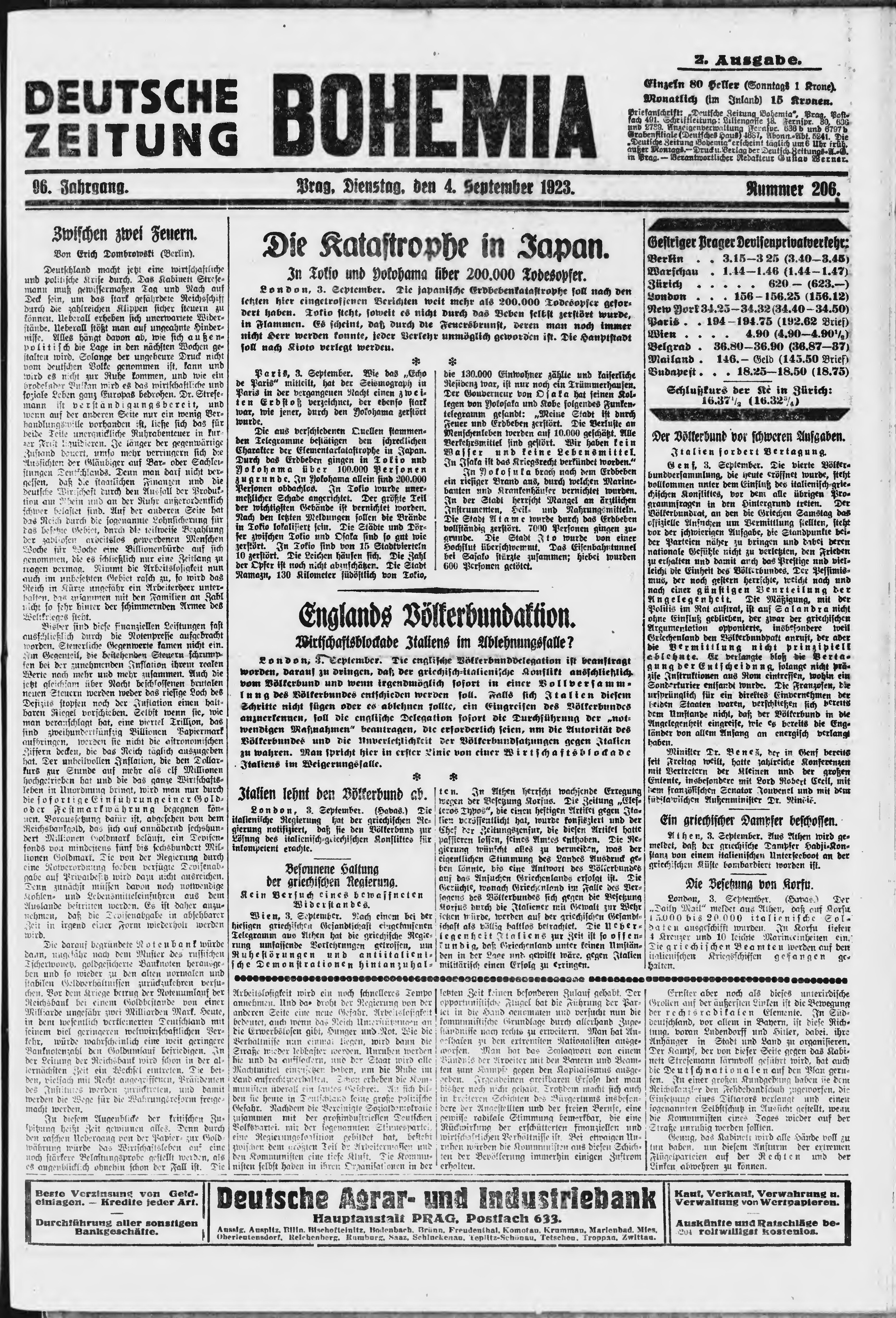 * Datum vydání výtisku: 4.9.1923 Číslo výtisku: 206 Poznámky k výtisku: ranní vydání;