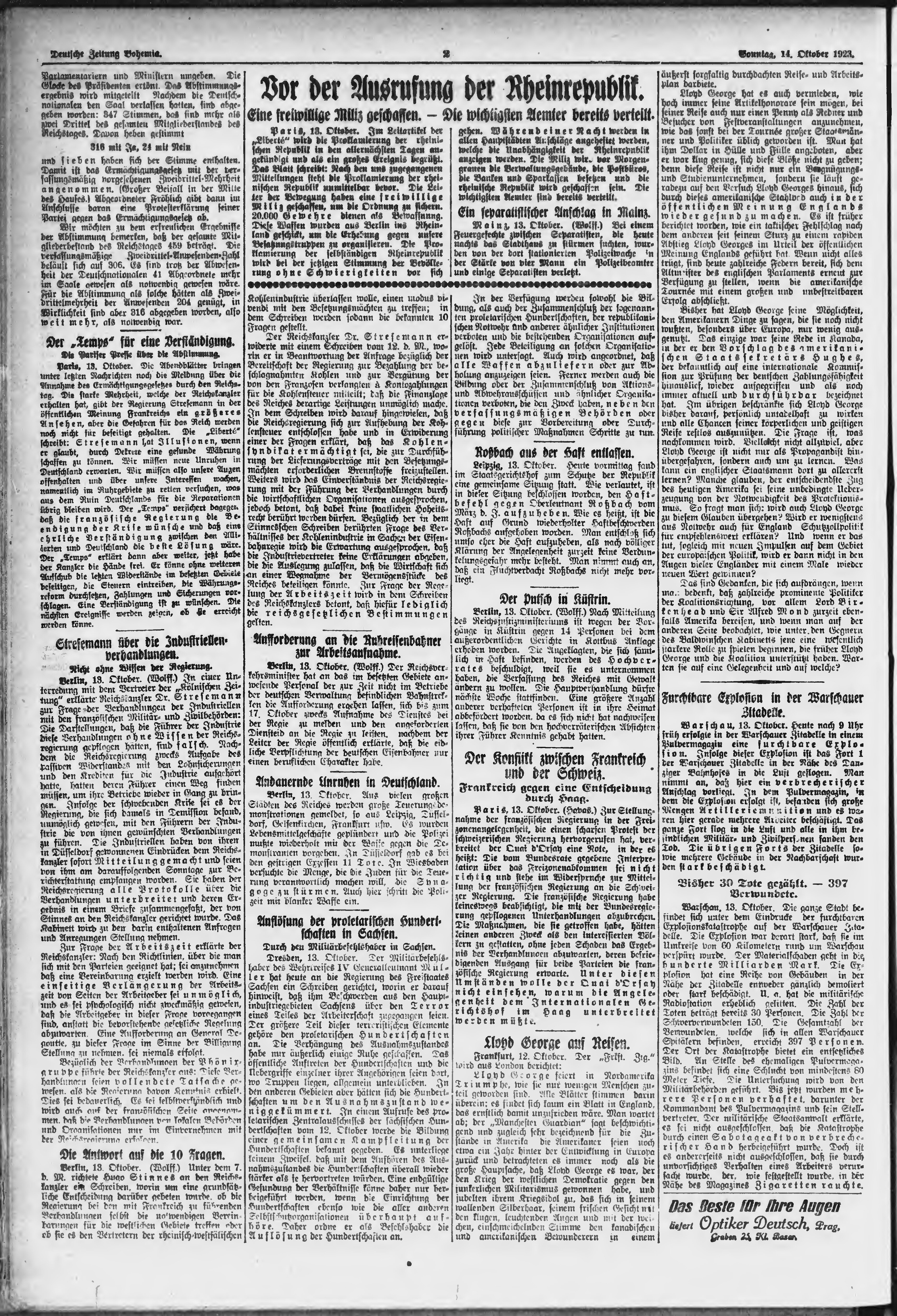 * Datum vydání výtisku: 14.10.1923 Číslo výtisku: 240 Poznámky k výtisku: ranní vydání;