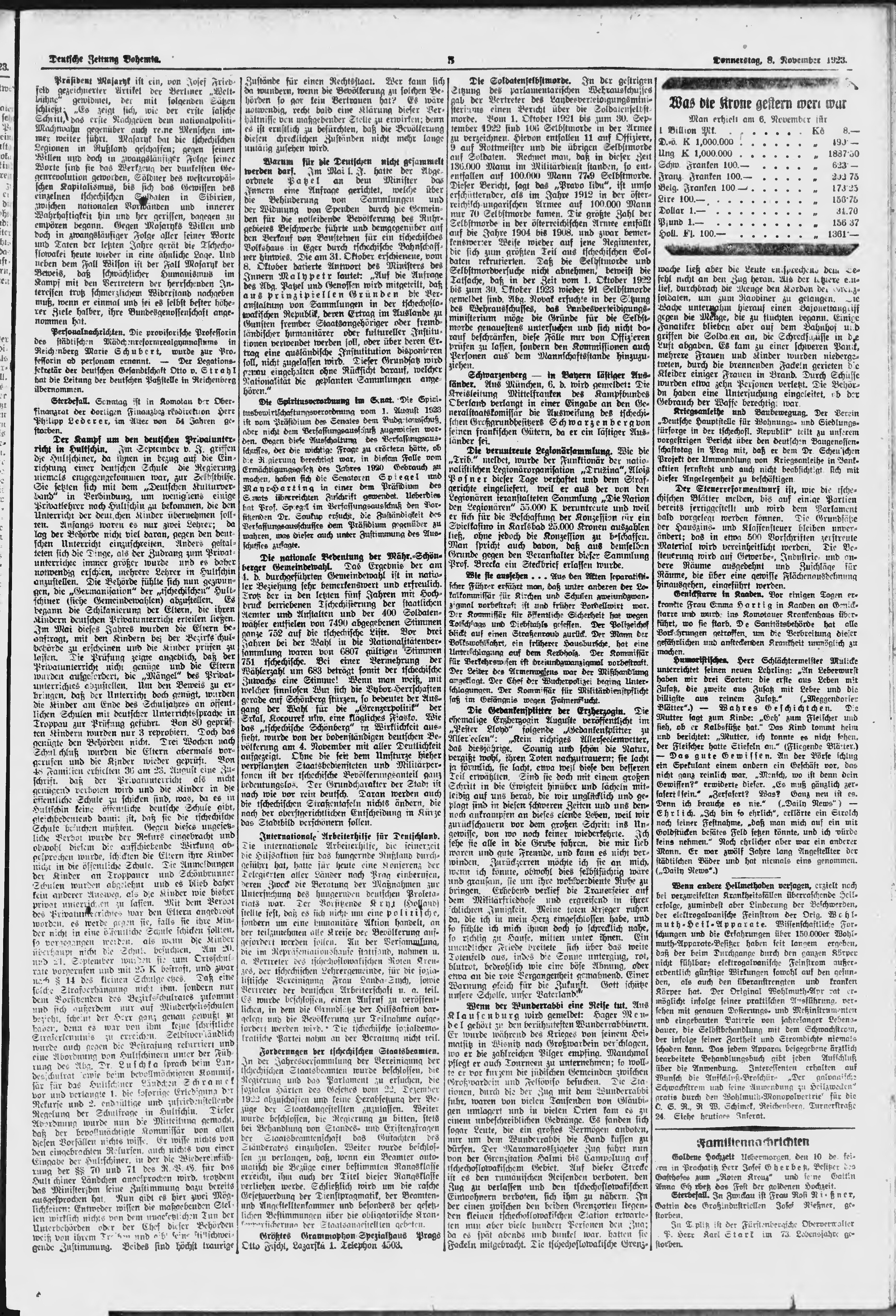 * Datum vydání výtisku: 8.11.1923 Číslo výtisku: 261 Poznámky k výtisku: ranní vydání;