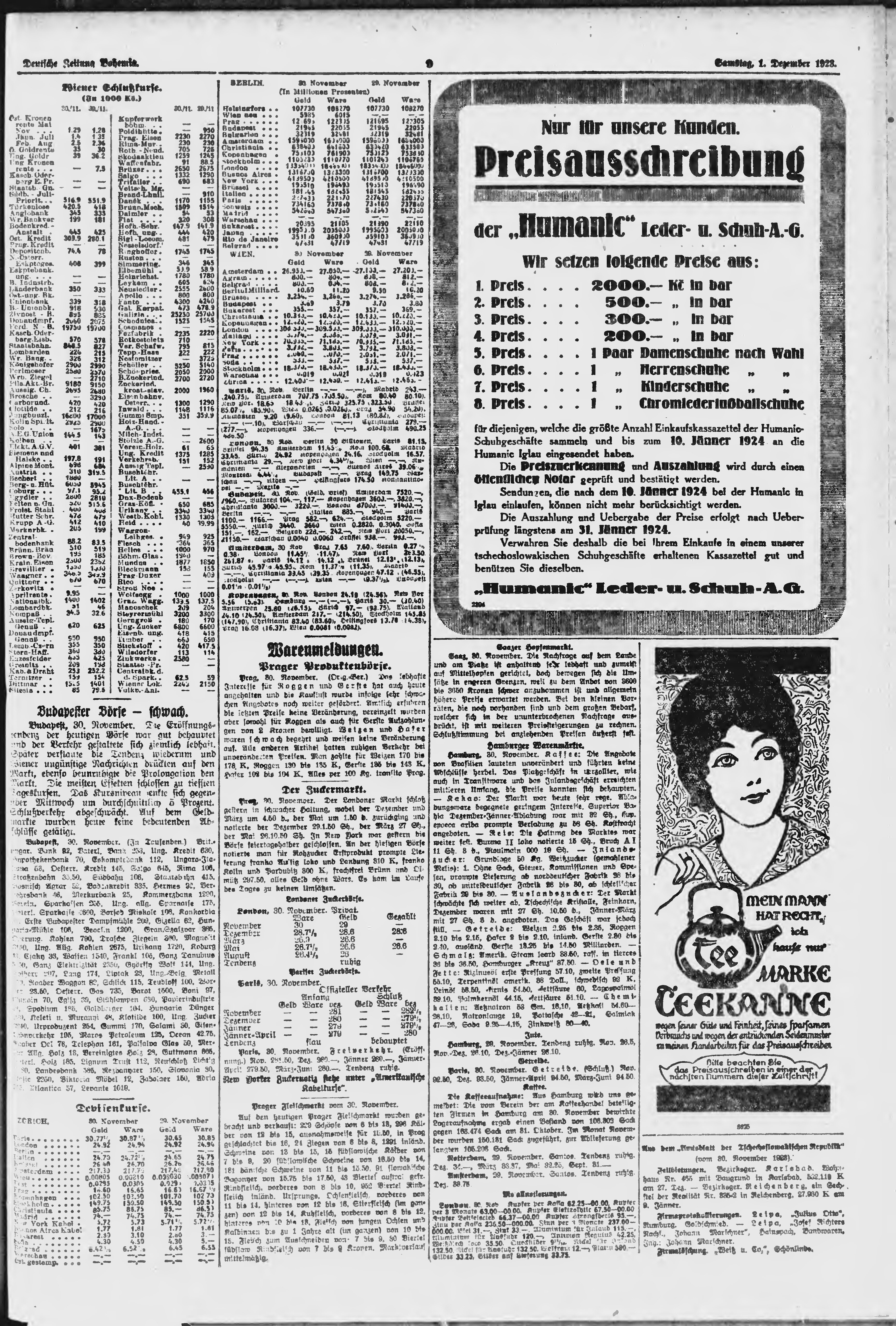 * Datum vydání výtisku: 1.12.1923 Číslo výtisku: 281 Poznámky k výtisku: ranní vydání;