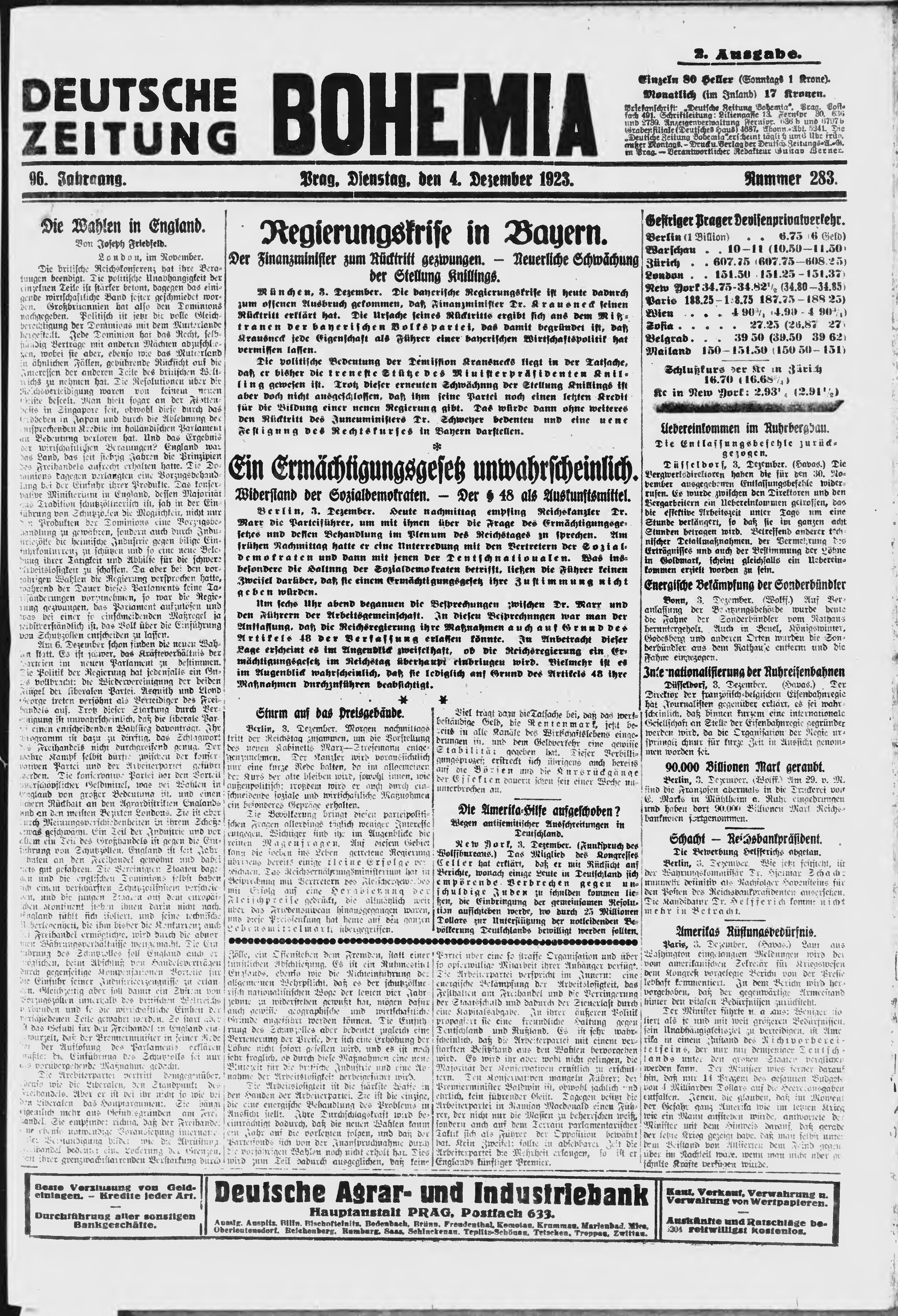 * Datum vydání výtisku: 4.12.1923 Číslo výtisku: 283 Poznámky k výtisku: ranní vydání;