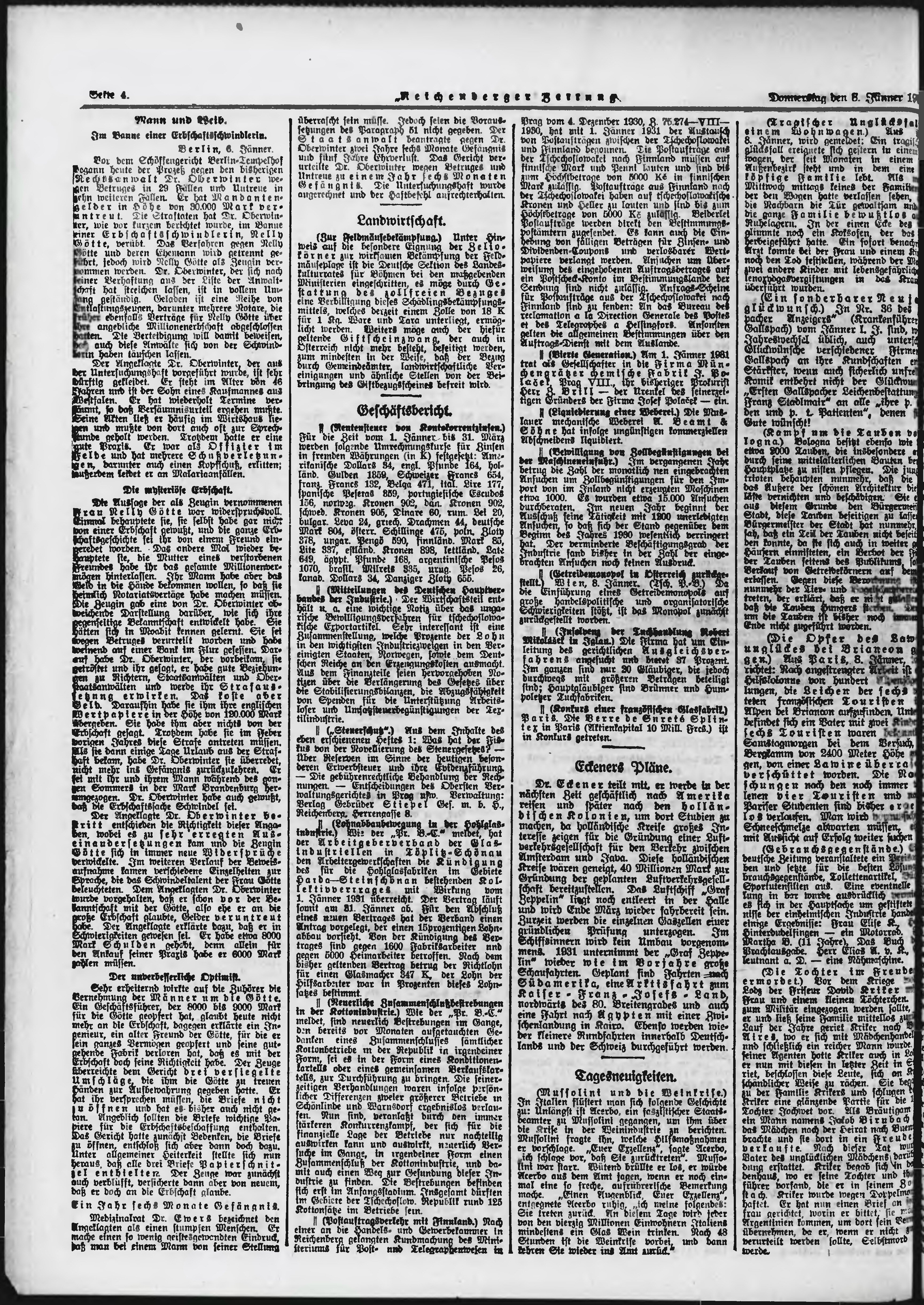 * Datum vydání výtisku: 8.1.1931 Číslo výtisku: 8 Typ výtisku: příloha Poznámky k výtisku: večerní vydání;