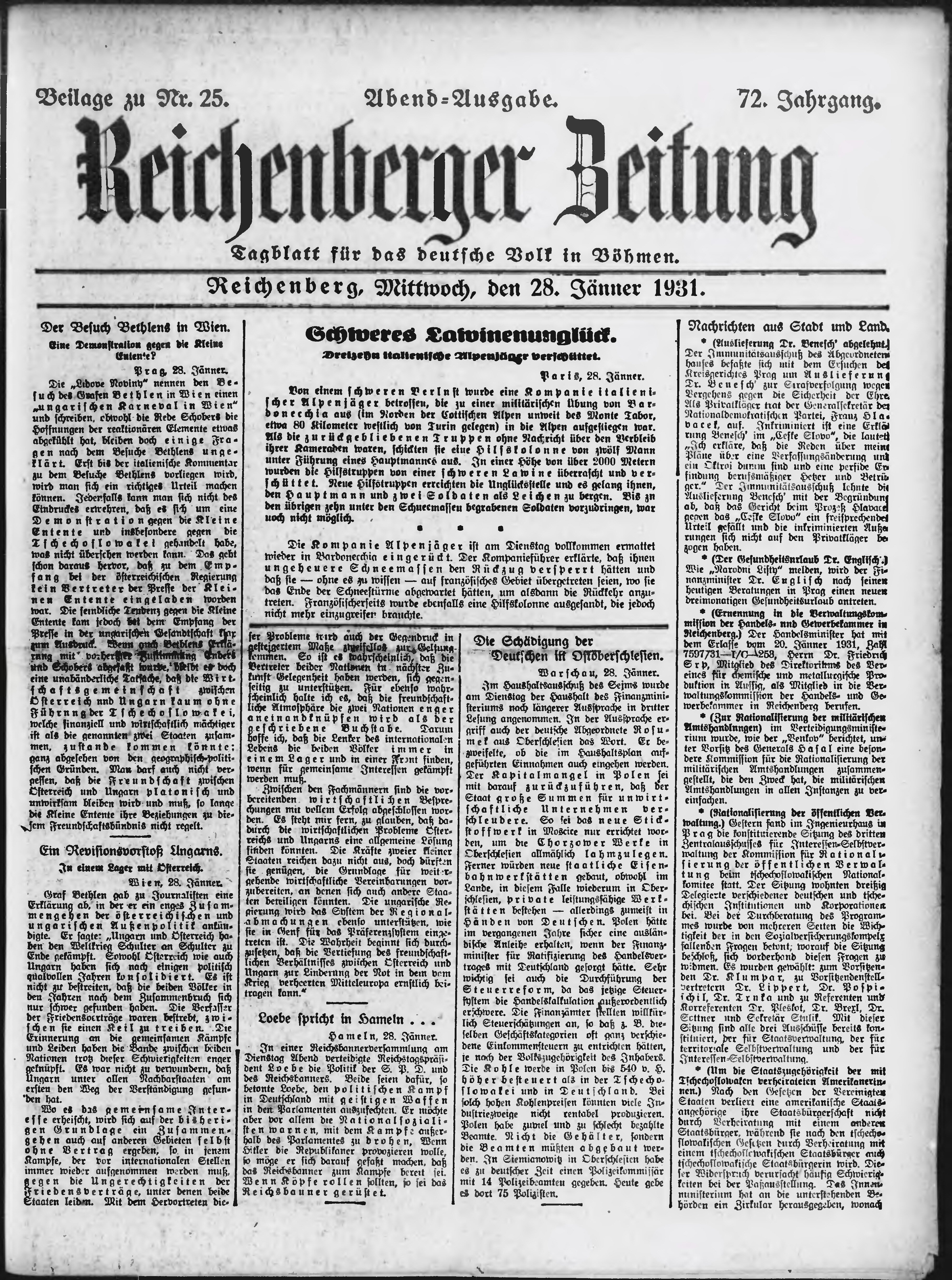 * Datum vydání výtisku: 28.1.1931 Číslo výtisku: 25 Typ výtisku: příloha Poznámky k výtisku: večerní vydání;