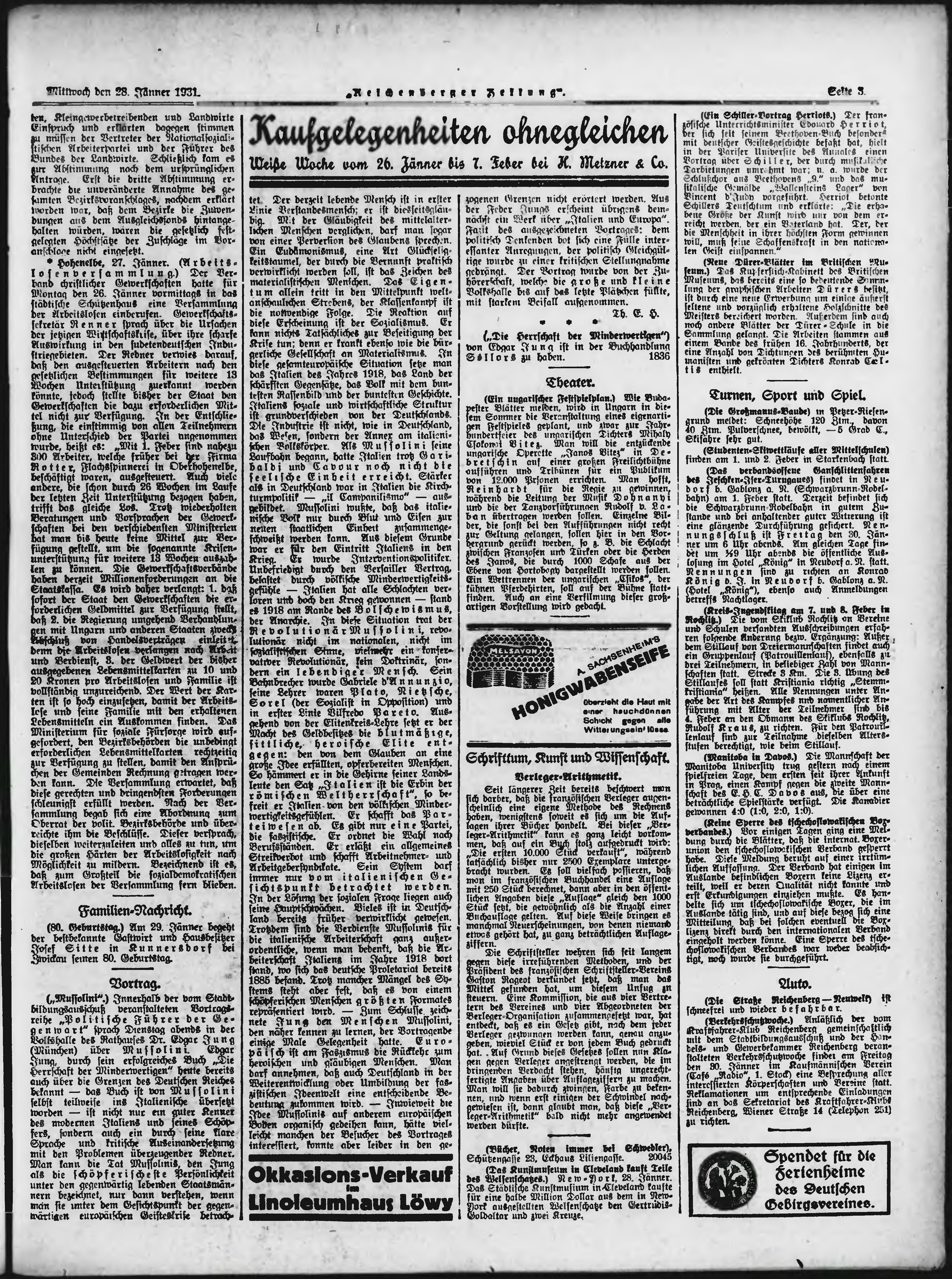 * Datum vydání výtisku: 28.1.1931 Číslo výtisku: 25 Typ výtisku: příloha Poznámky k výtisku: večerní vydání;