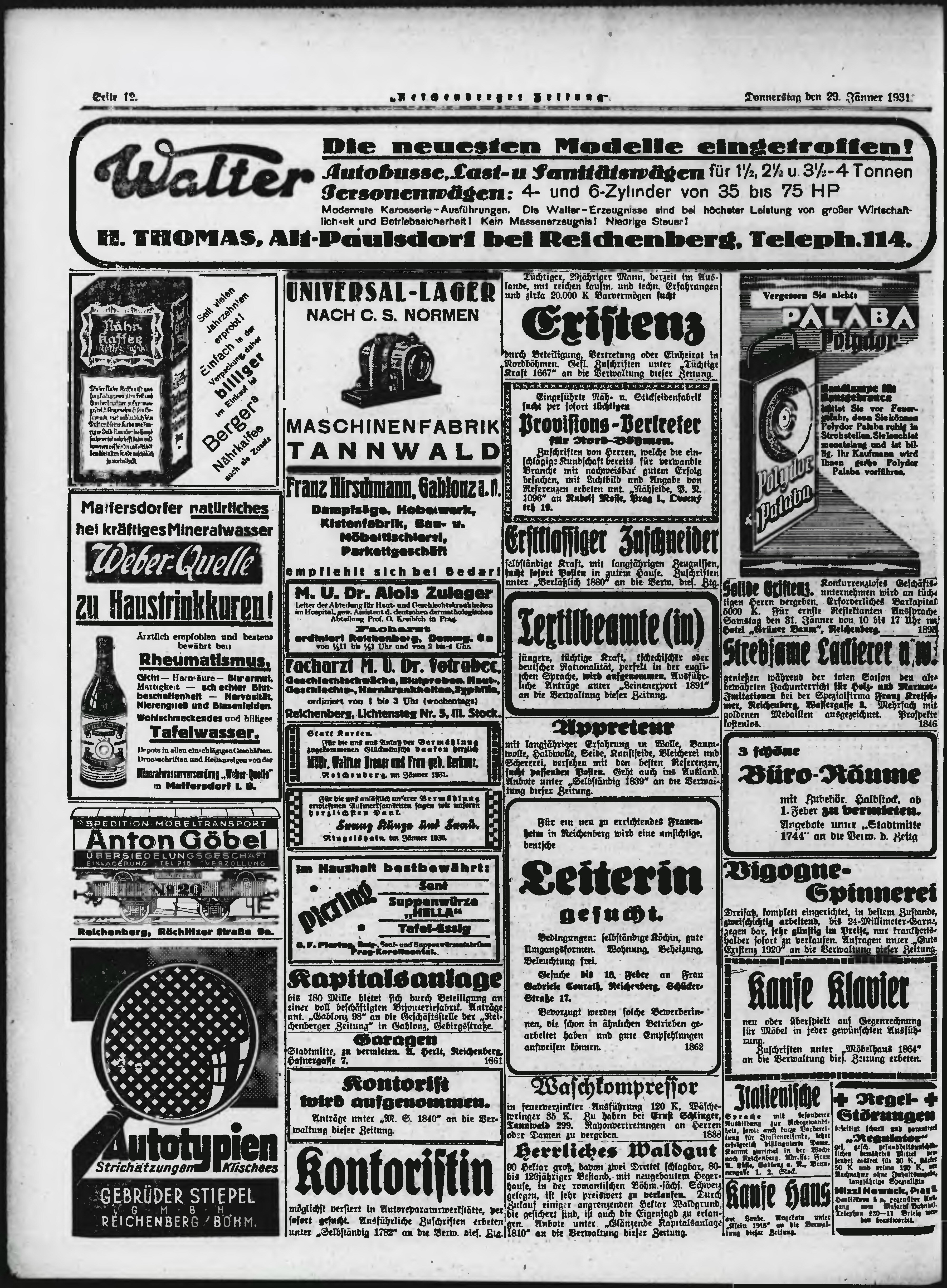 * Datum vydání výtisku: 29.1.1931 Číslo výtisku: 25 Poznámky k výtisku: ranní vydání;