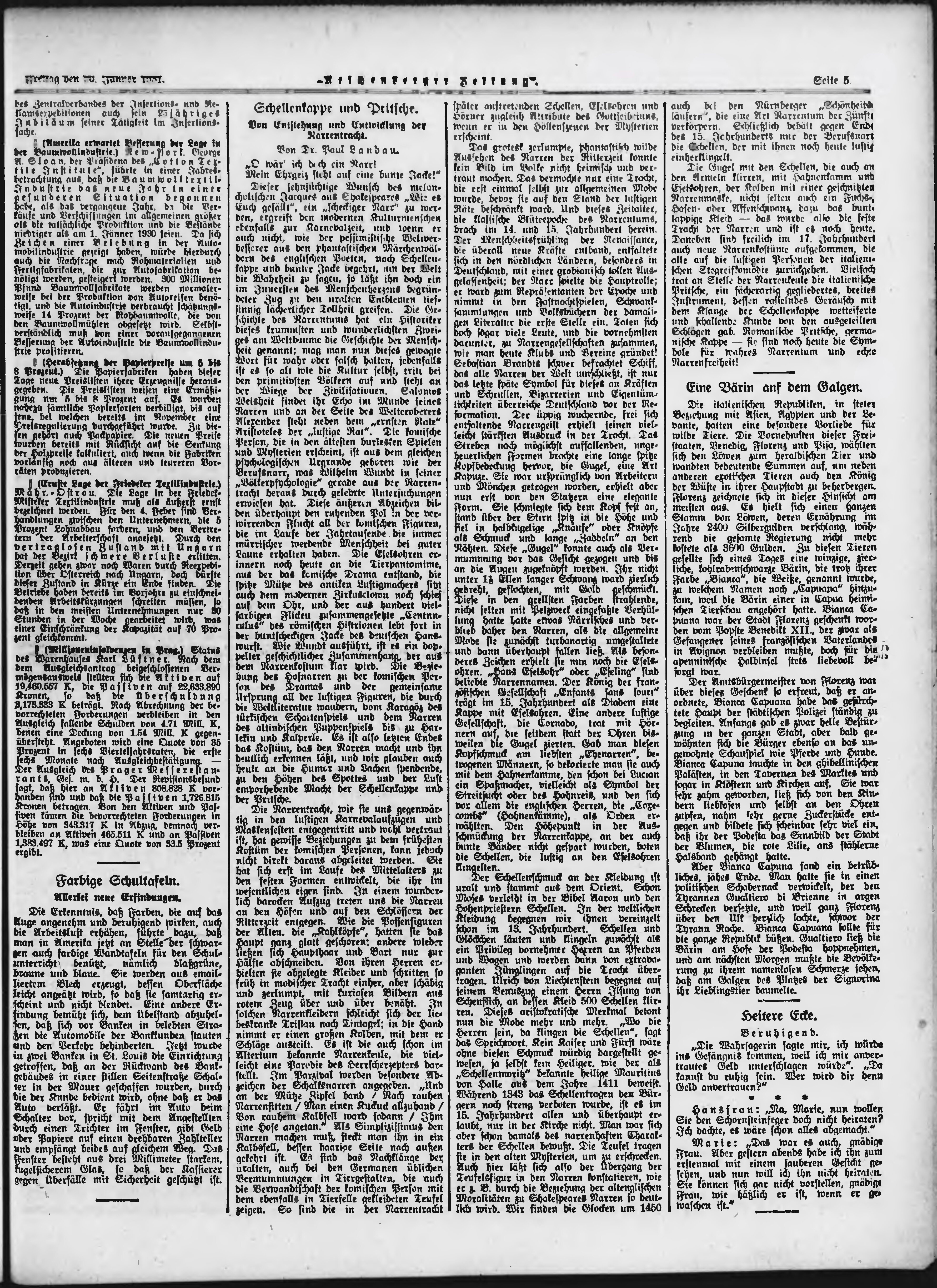* Datum vydání výtisku: 30.1.1931 Číslo výtisku: 27 Typ výtisku: příloha Poznámky k výtisku: večerní vydání;