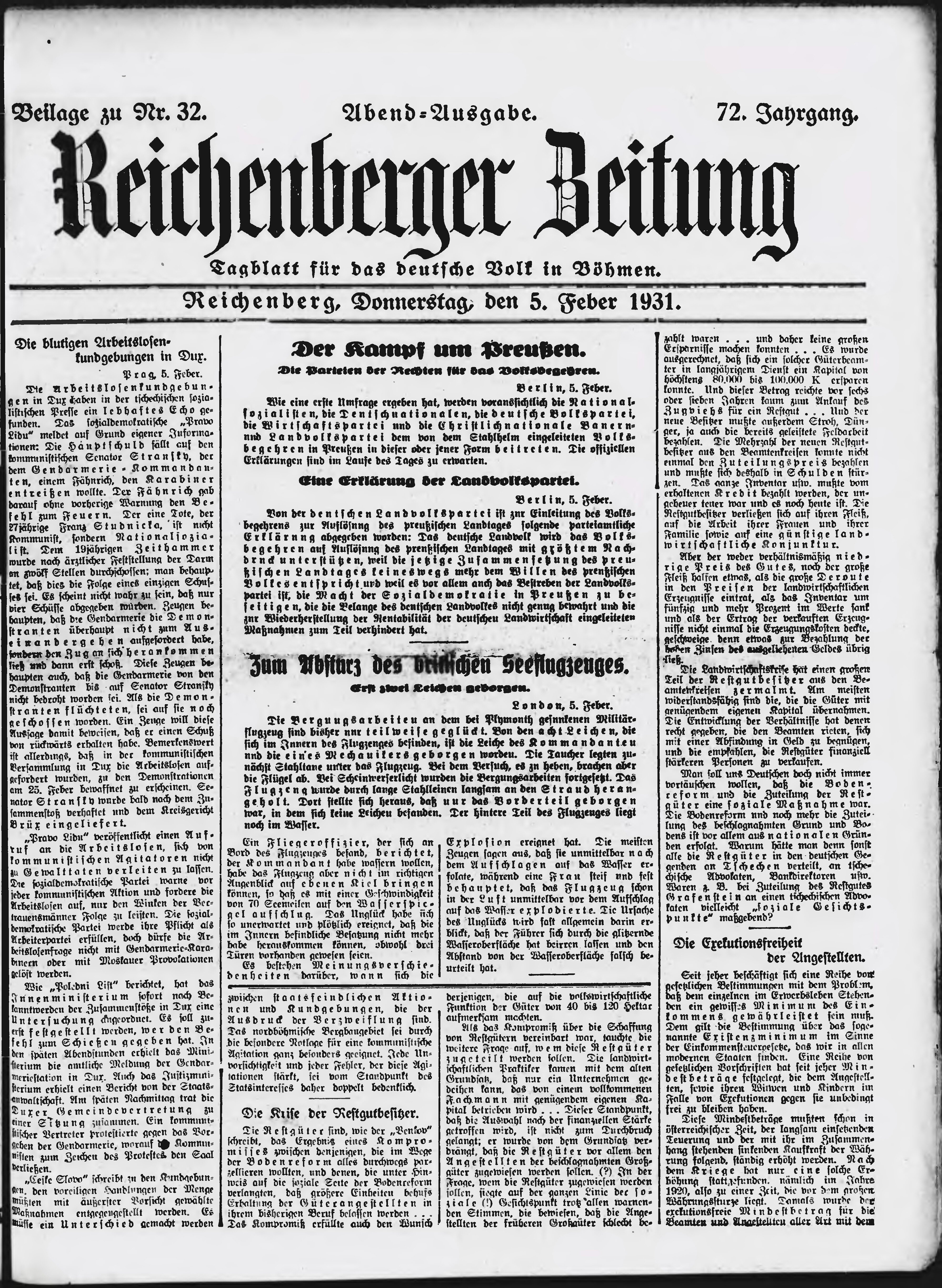 * Datum vydání výtisku: 5.2.1931 Číslo výtisku: 32 Typ výtisku: příloha Poznámky k výtisku: večerní vydání;