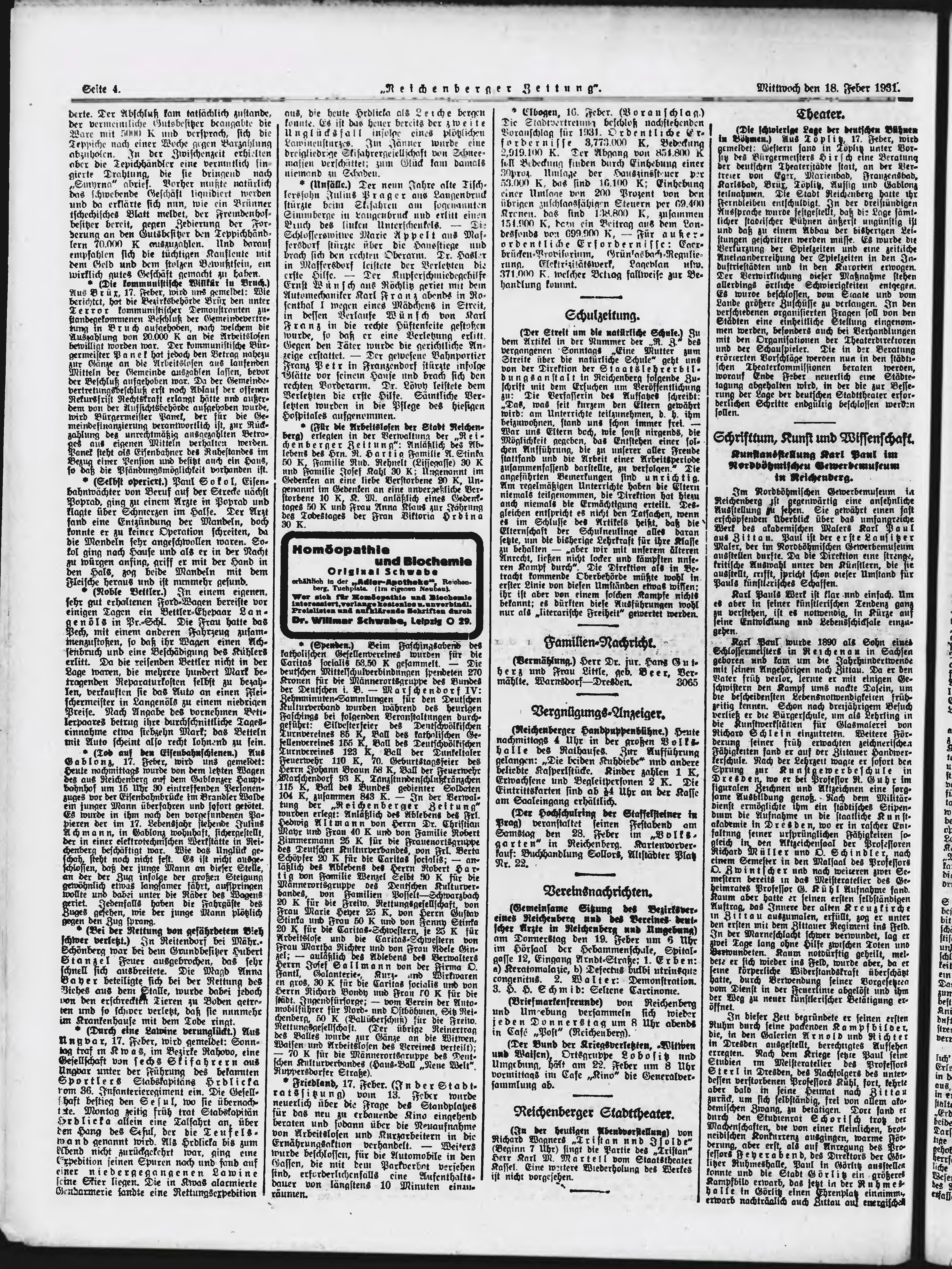 * Datum vydání výtisku: 18.2.1931 Číslo výtisku: 42 Poznámky k výtisku: ranní vydání;