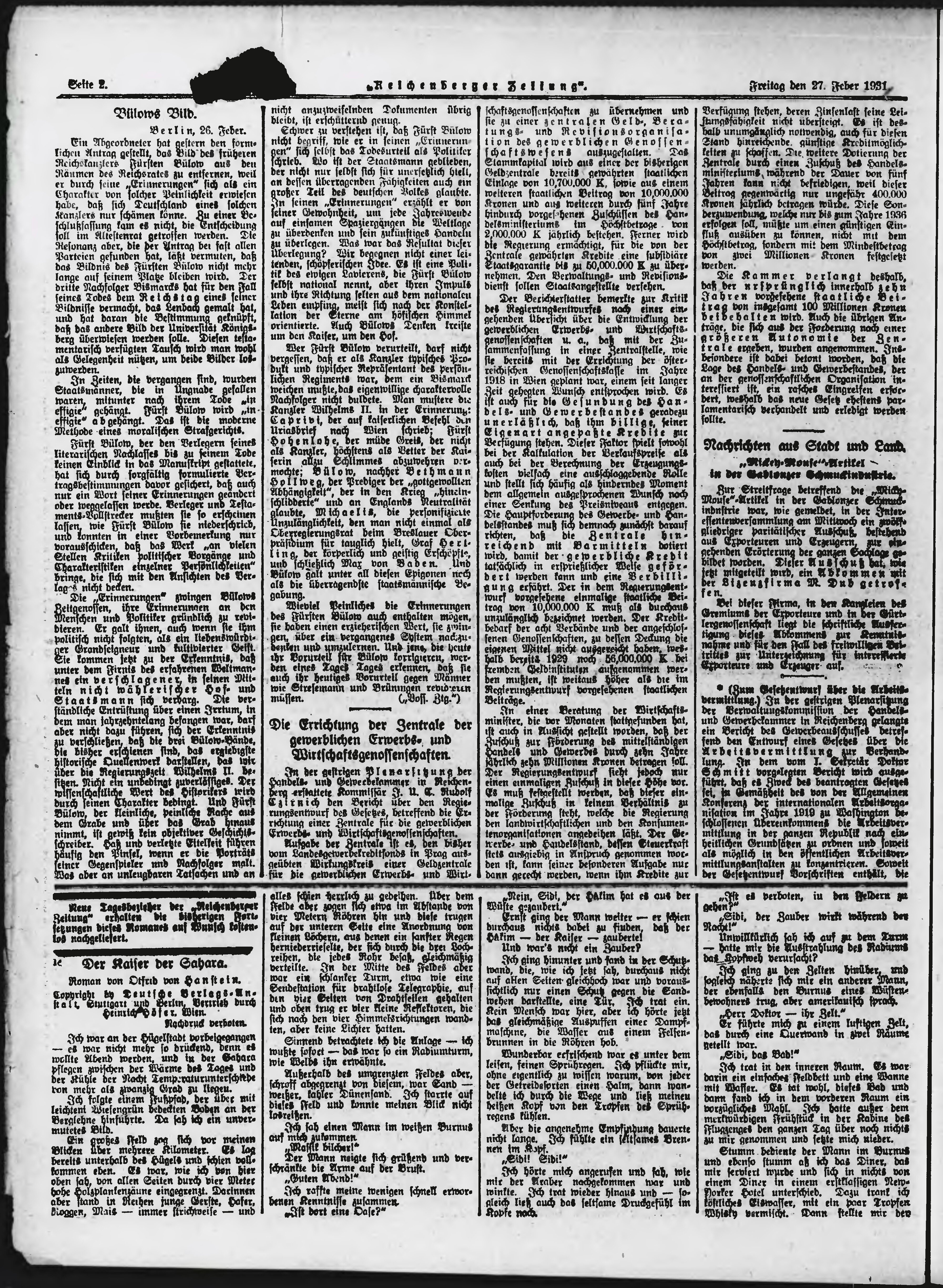 * Datum vydání výtisku: 27.2.1931 Číslo výtisku: 50 Poznámky k výtisku: ranní vydání;