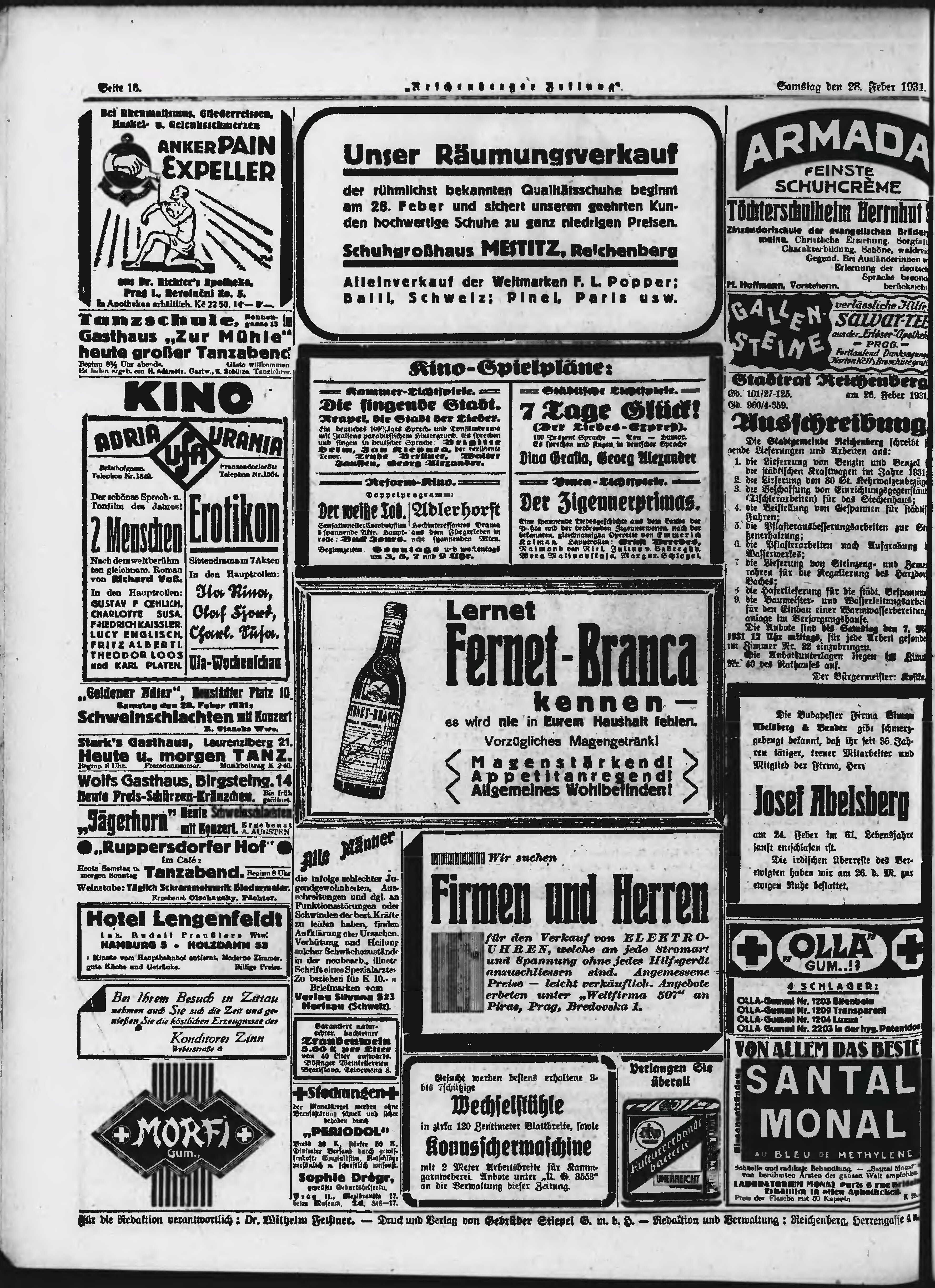 * Datum vydání výtisku: 28.2.1931 Číslo výtisku: 51 Poznámky k výtisku: ranní vydání;