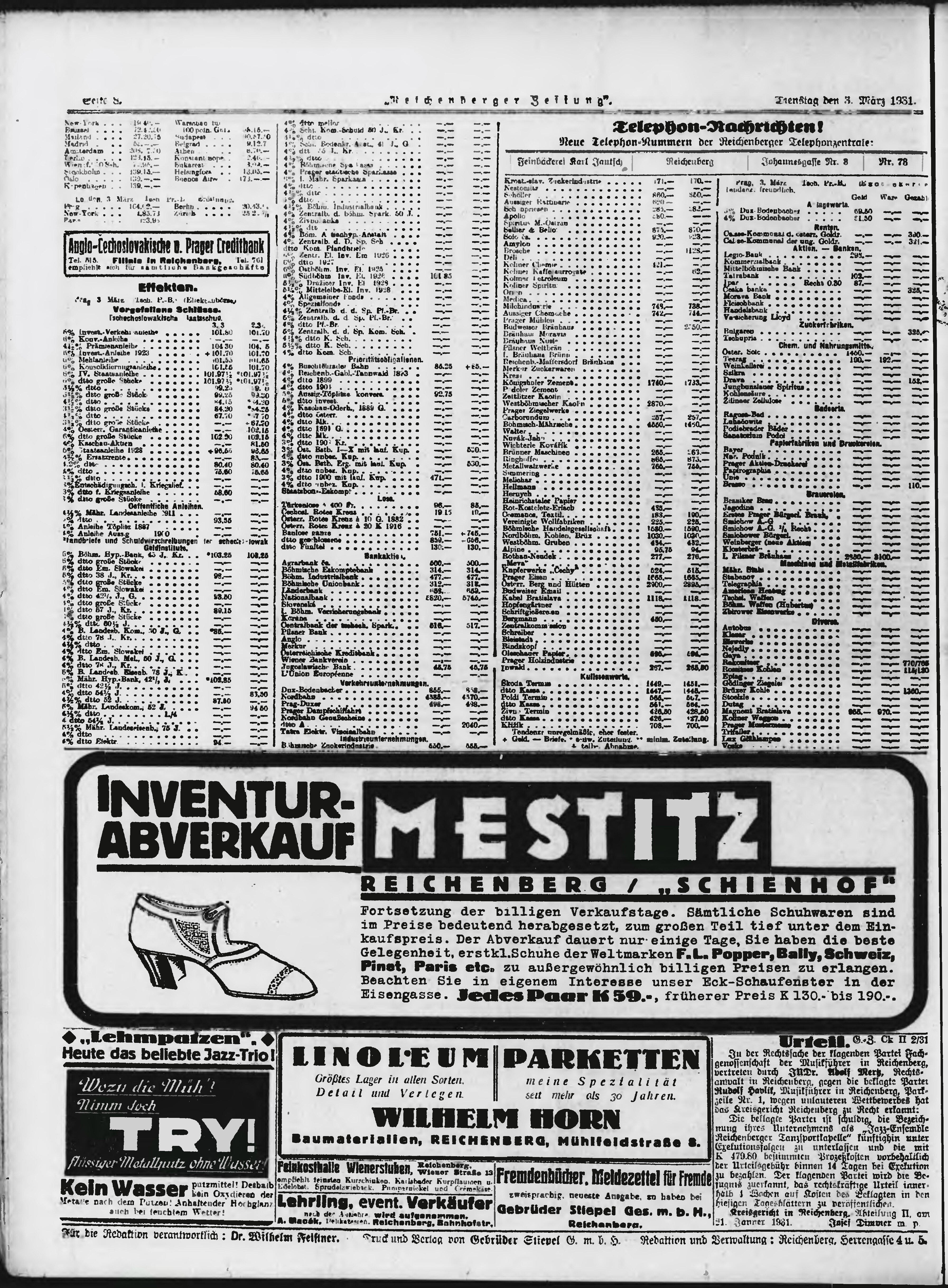 * Datum vydání výtisku: 3.3.1931 Číslo výtisku: 54 Typ výtisku: příloha Poznámky k výtisku: večerní vydání;