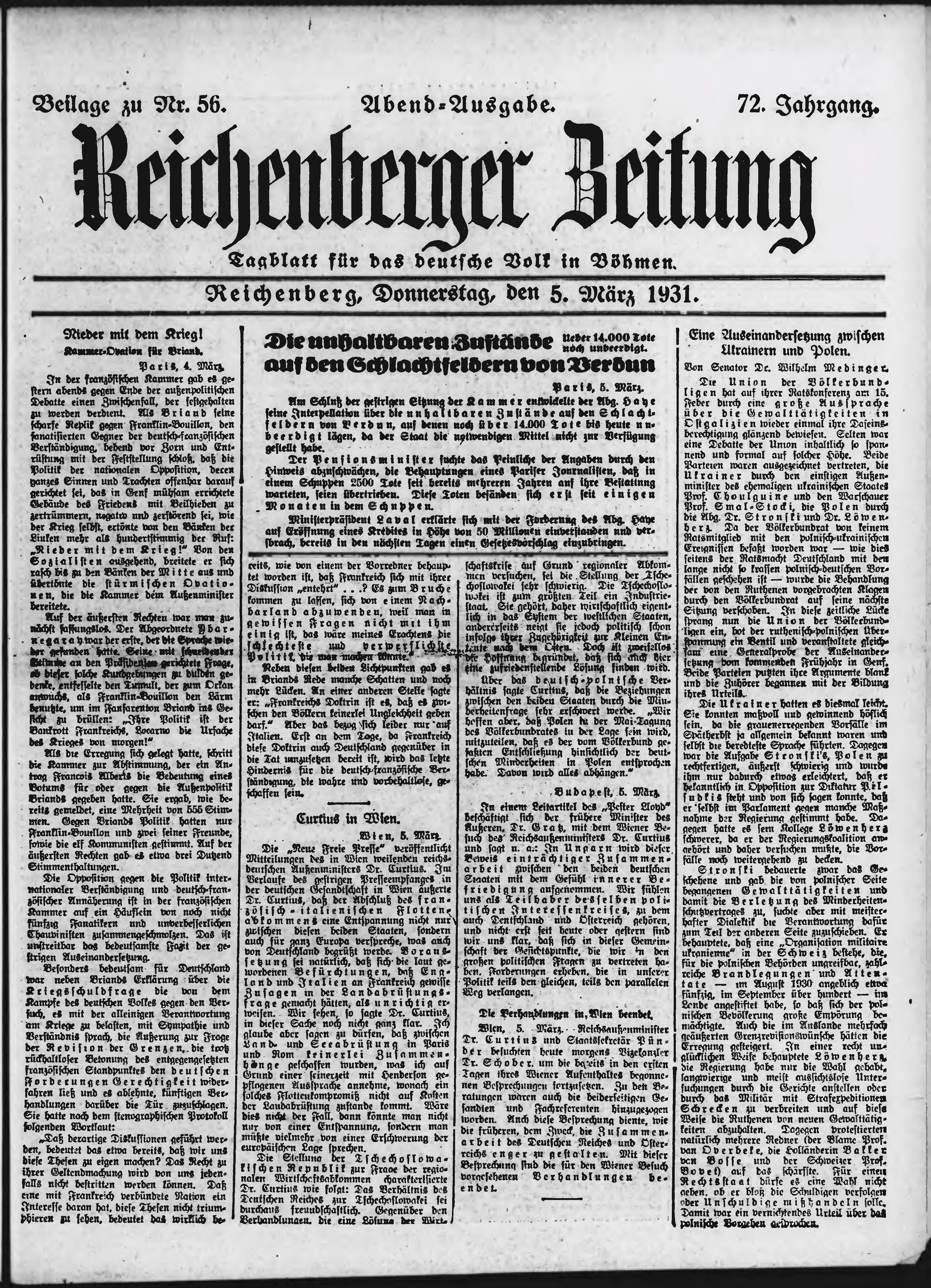 * Datum vydání výtisku: 5.3.1931 Číslo výtisku: 56 Typ výtisku: příloha Poznámky k výtisku: večerní vydání;