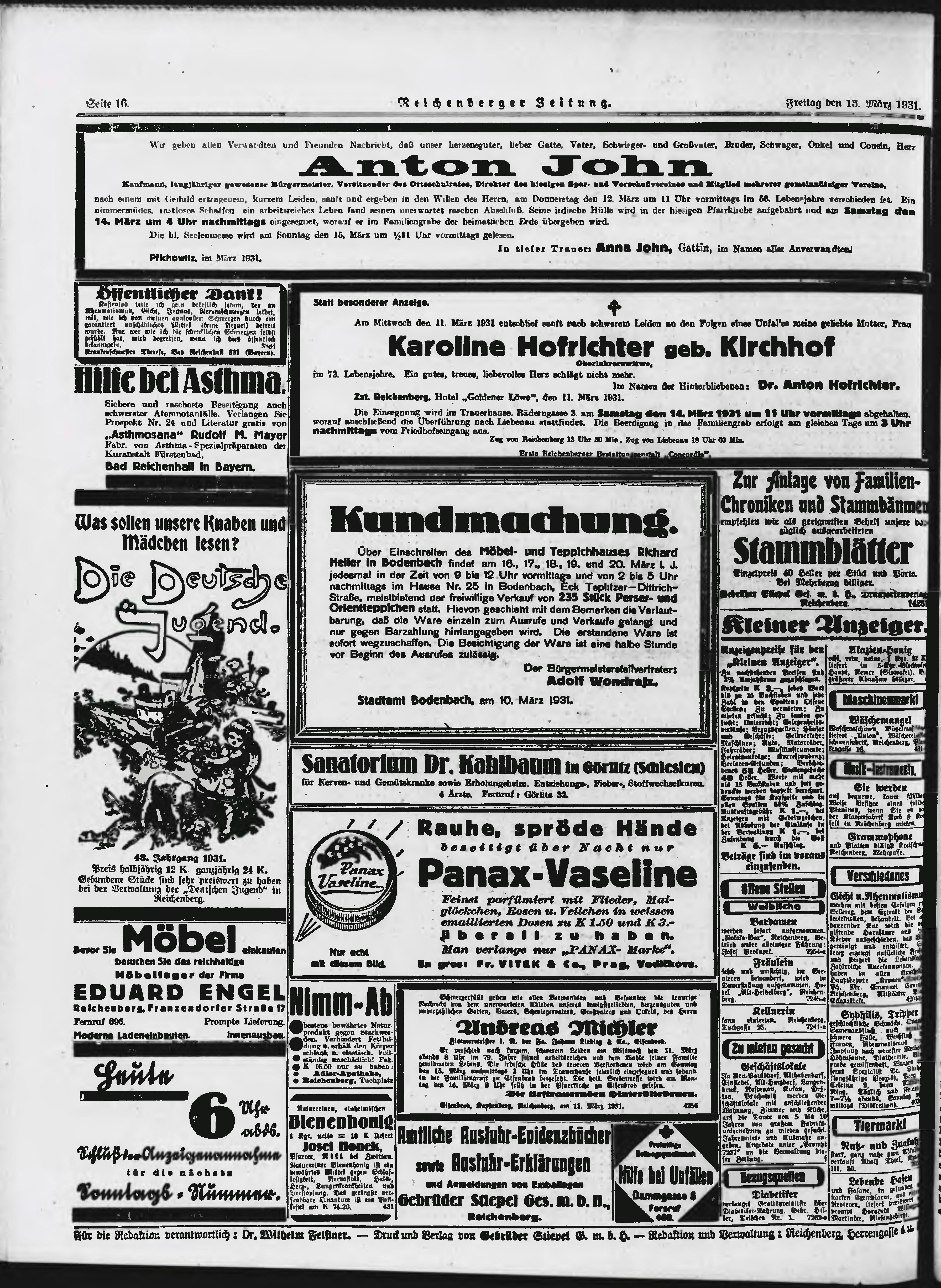 * Datum vydání výtisku: 13.3.1931 Číslo výtisku: 62 Poznámky k výtisku: ranní vydání;