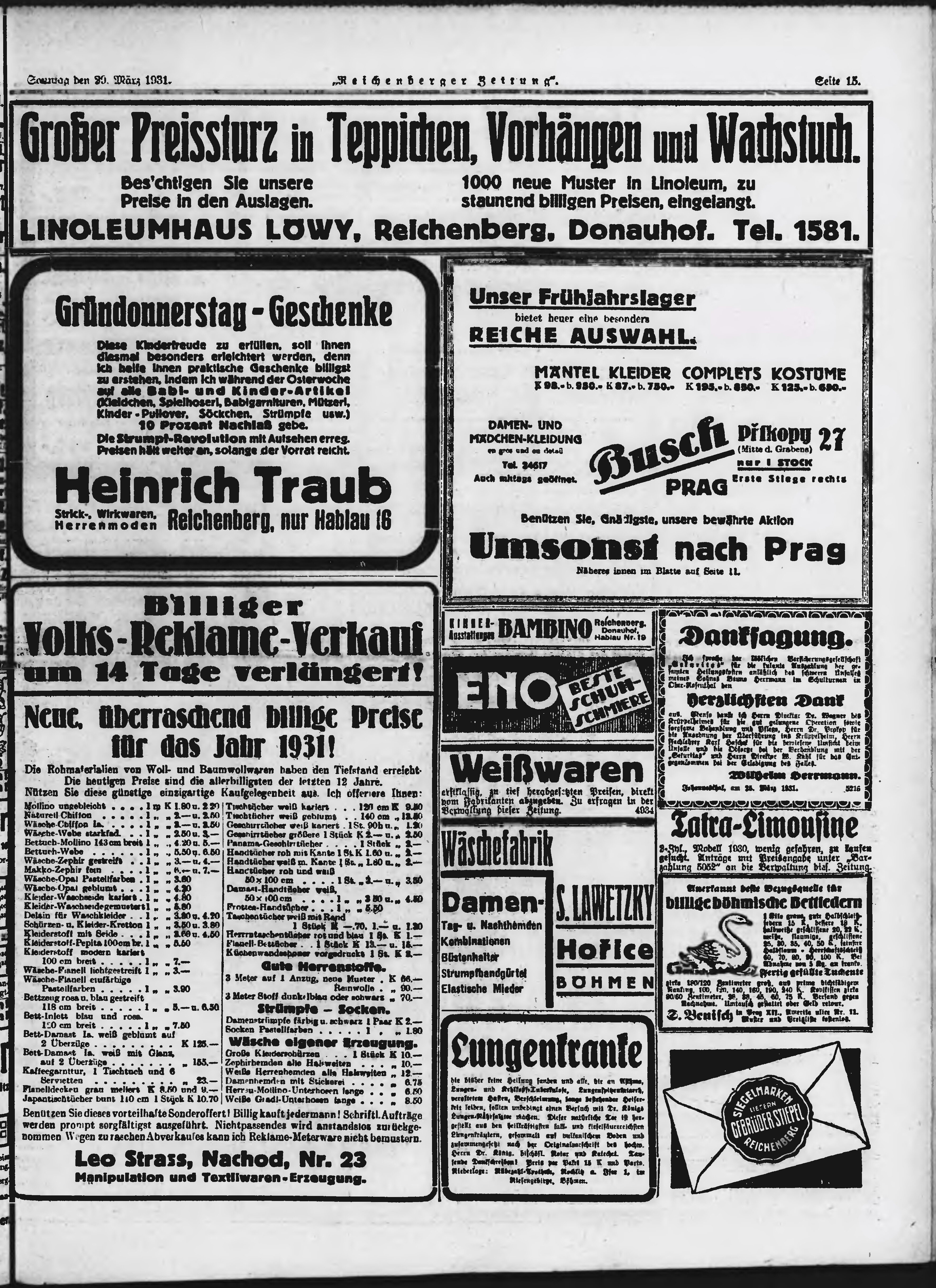 * Datum vydání výtisku: 29.3.1931 Číslo výtisku: 76 Poznámky k výtisku: ranní vydání;