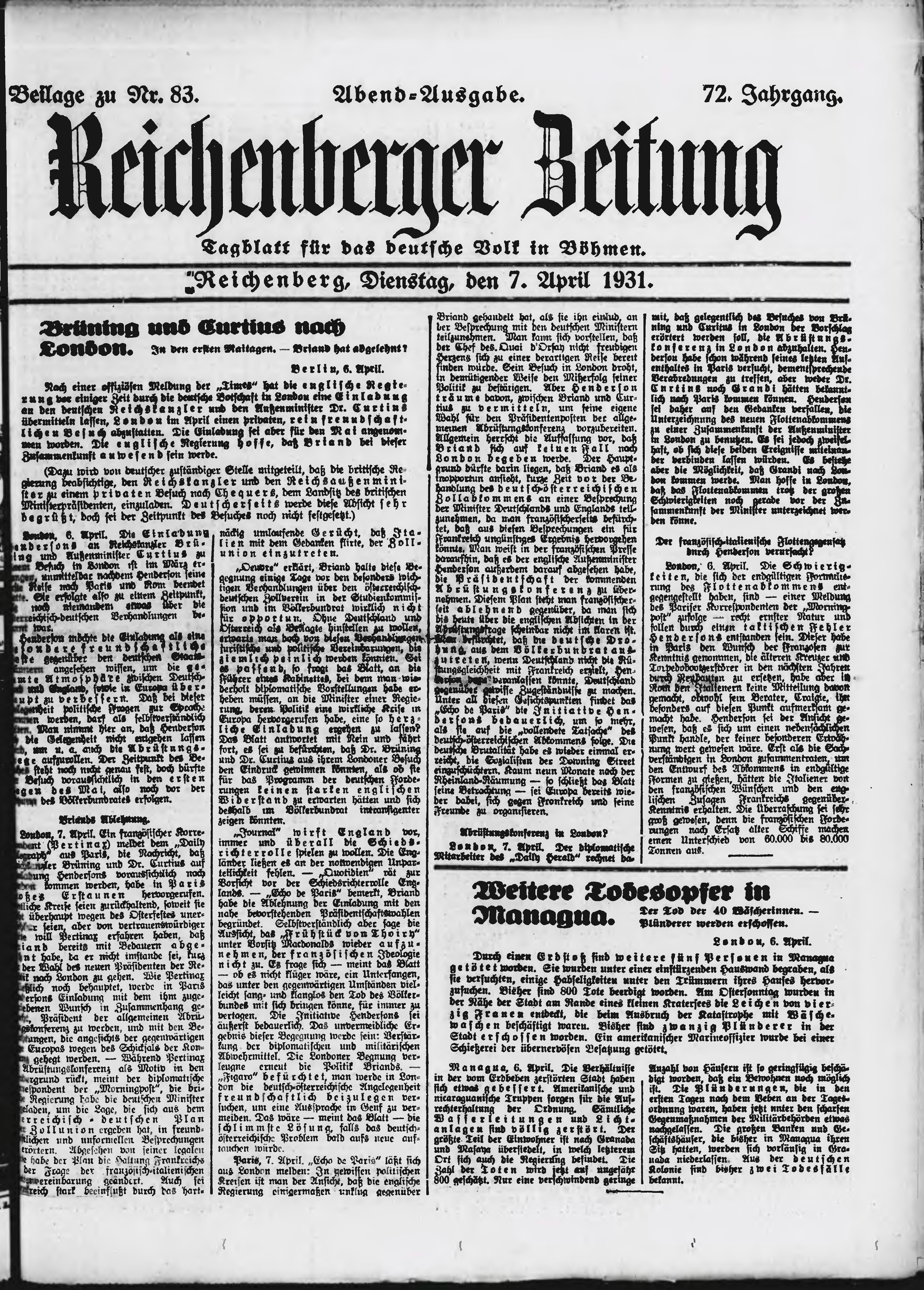 * Datum vydání výtisku: 7.4.1931 Číslo výtisku: 83 Typ výtisku: příloha Poznámky k výtisku: večerní vydání;