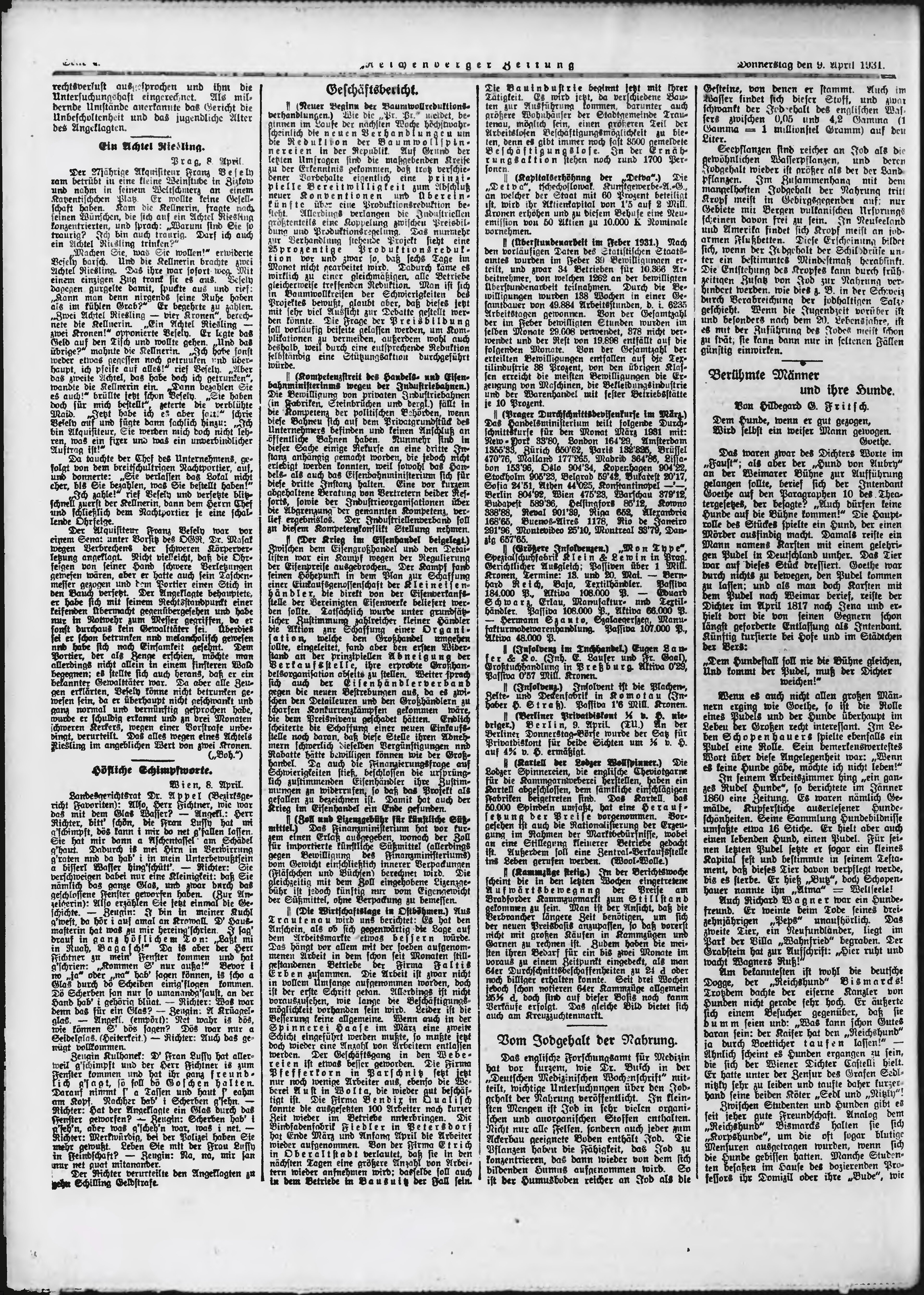 * Datum vydání výtisku: 9.4.1931 Číslo výtisku: 85 Typ výtisku: příloha Poznámky k výtisku: večerní vydání;