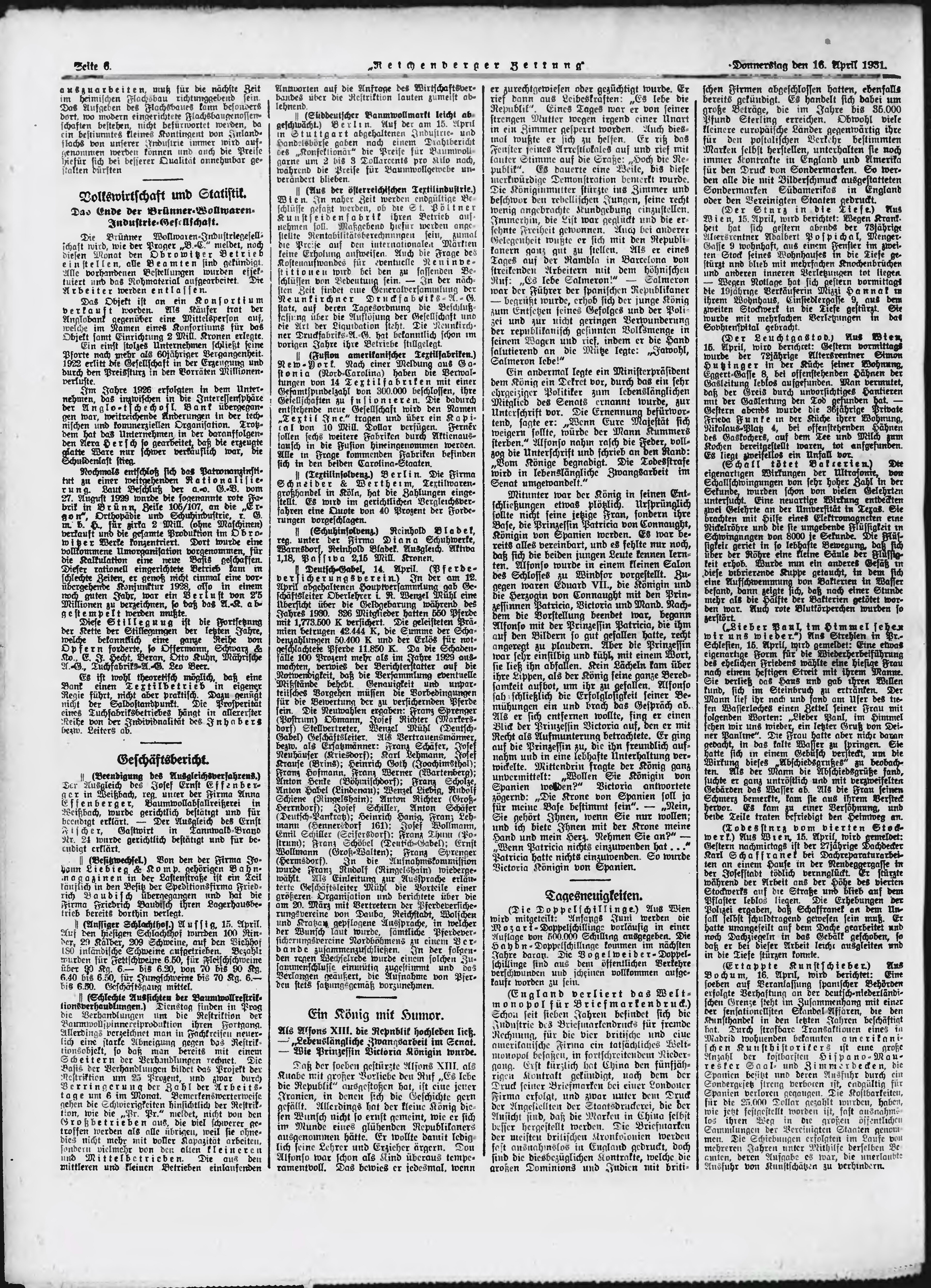 * Datum vydání výtisku: 16.4.1931 Číslo výtisku: 91 Typ výtisku: příloha Poznámky k výtisku: večerní vydání;