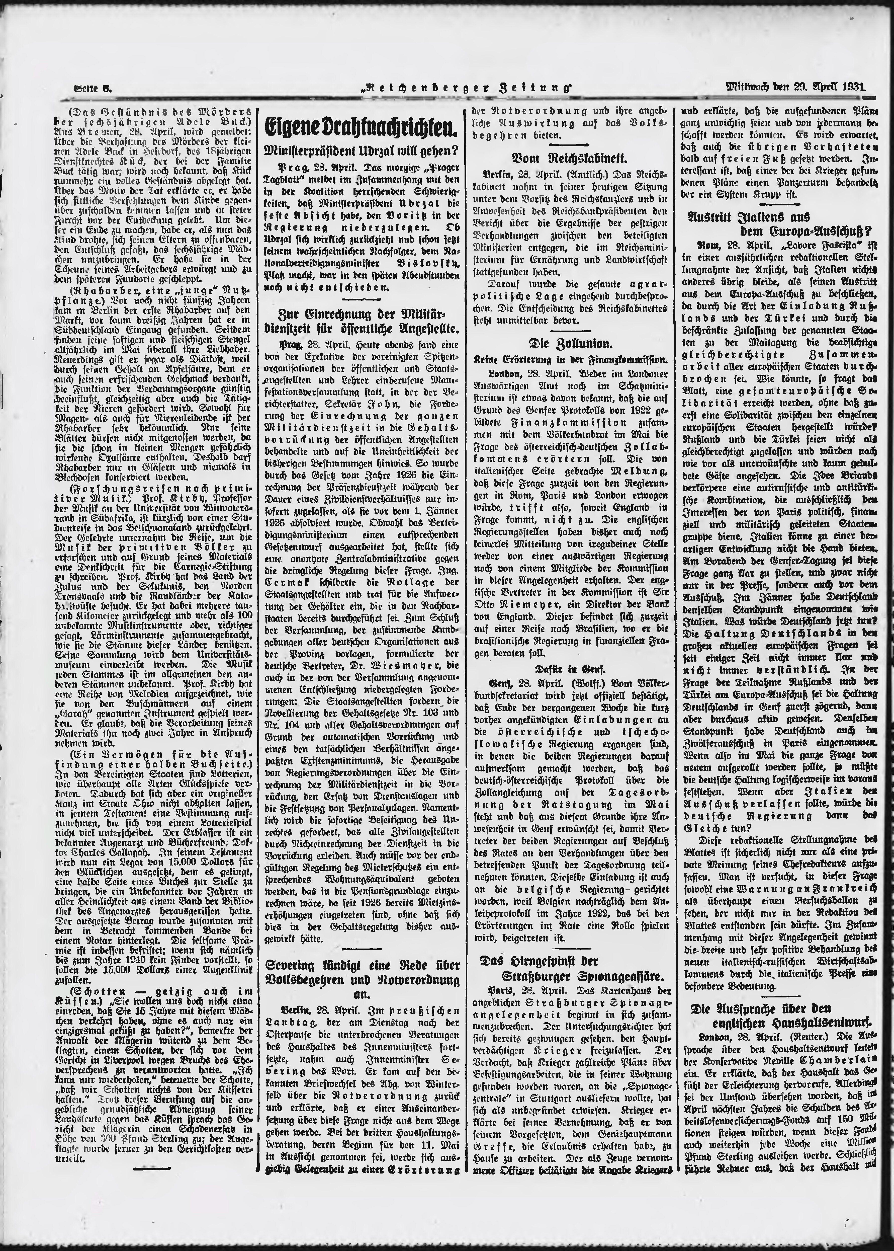 * Datum vydání výtisku: 29.4.1931 Číslo výtisku: 101 Poznámky k výtisku: ranní vydání;