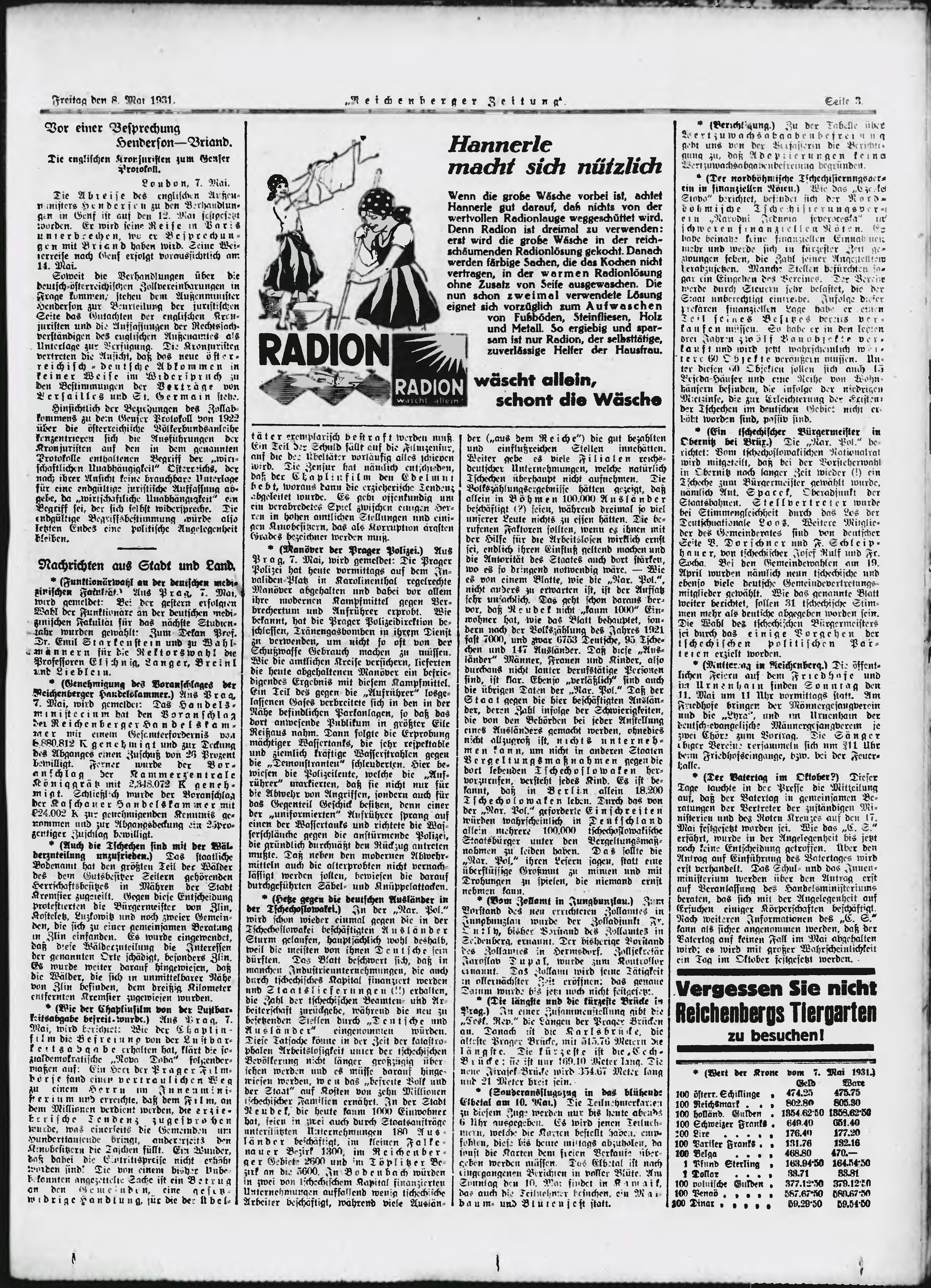 * Datum vydání výtisku: 8.5.1931 Číslo výtisku: 108 Poznámky k výtisku: ranní vydání;
