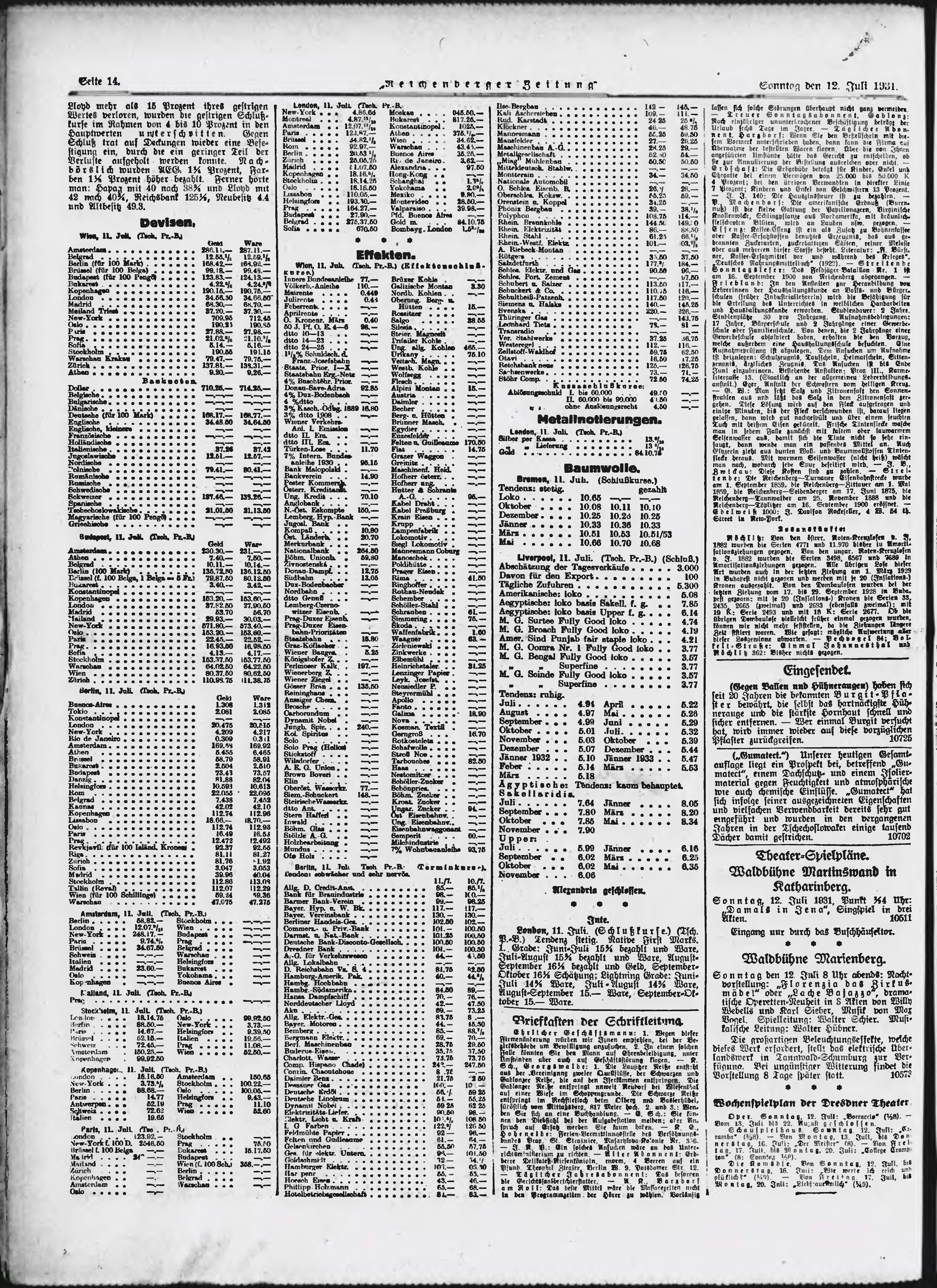 * Datum vydání výtisku: 12.7.1931 Číslo výtisku: 161 Poznámky k výtisku: ranní vydání;