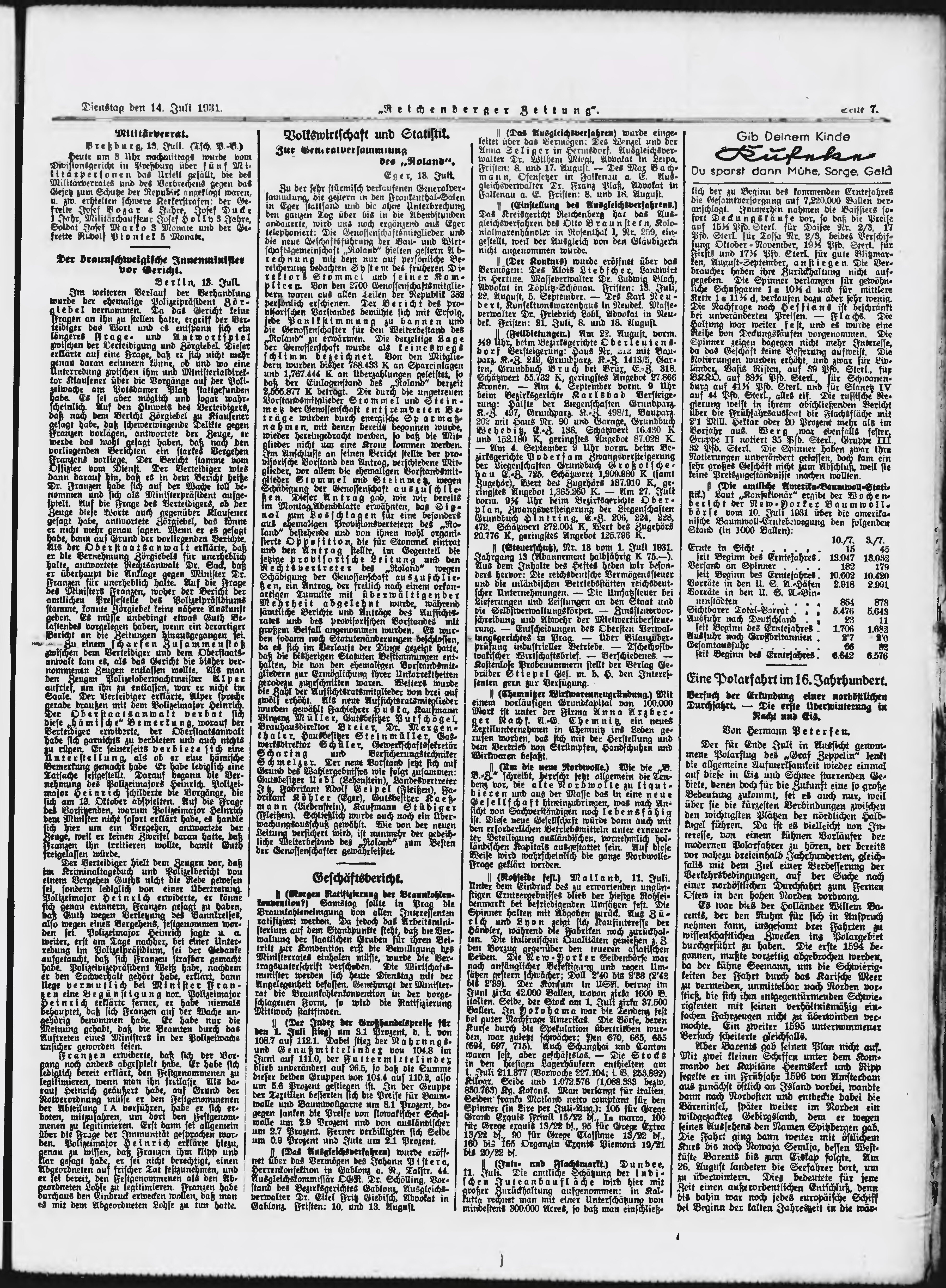 * Datum vydání výtisku: 14.7.1931 Číslo výtisku: 162 Poznámky k výtisku: ranní vydání;