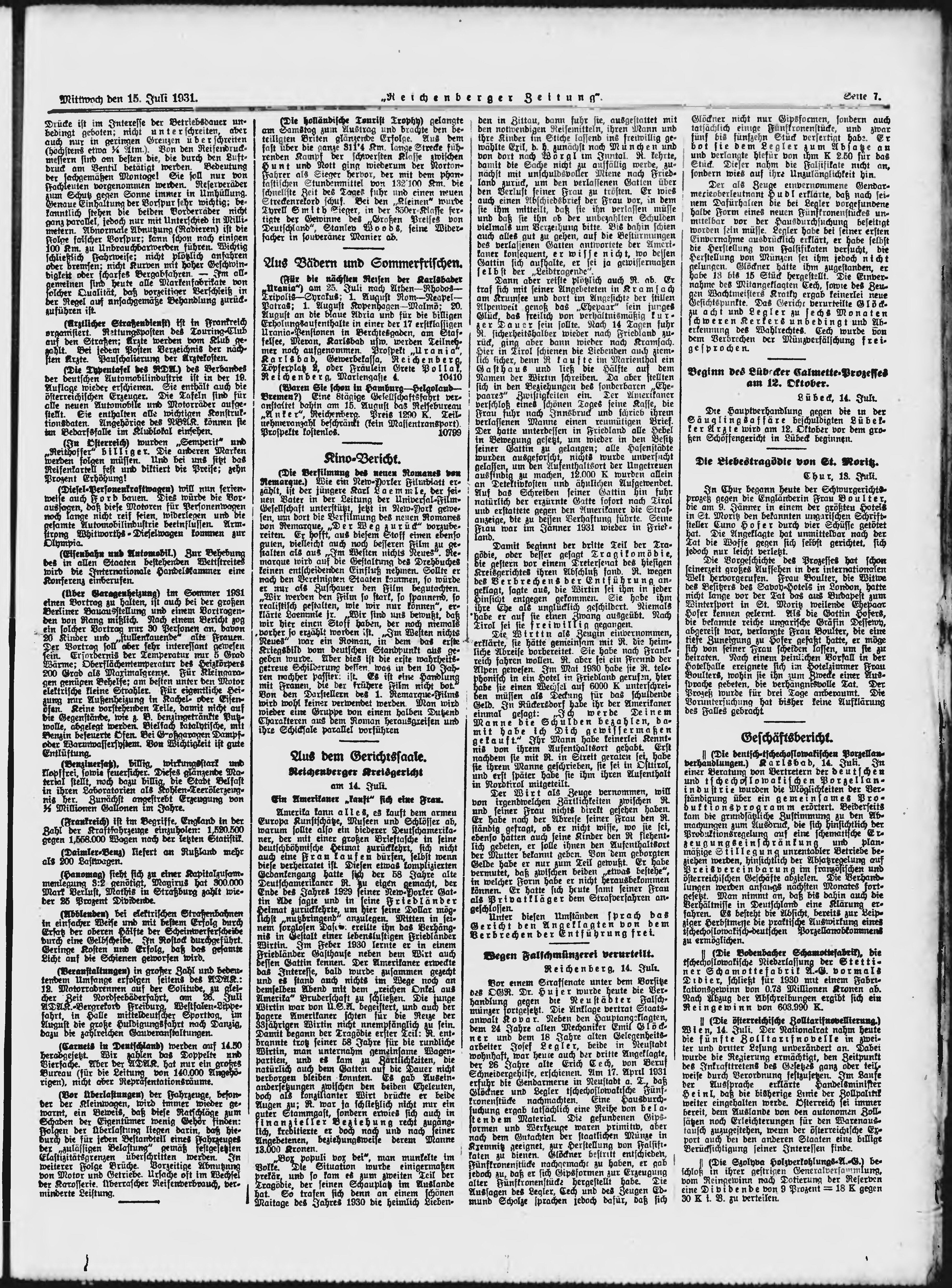 * Datum vydání výtisku: 15.7.1931 Číslo výtisku: 163 Poznámky k výtisku: ranní vydání;