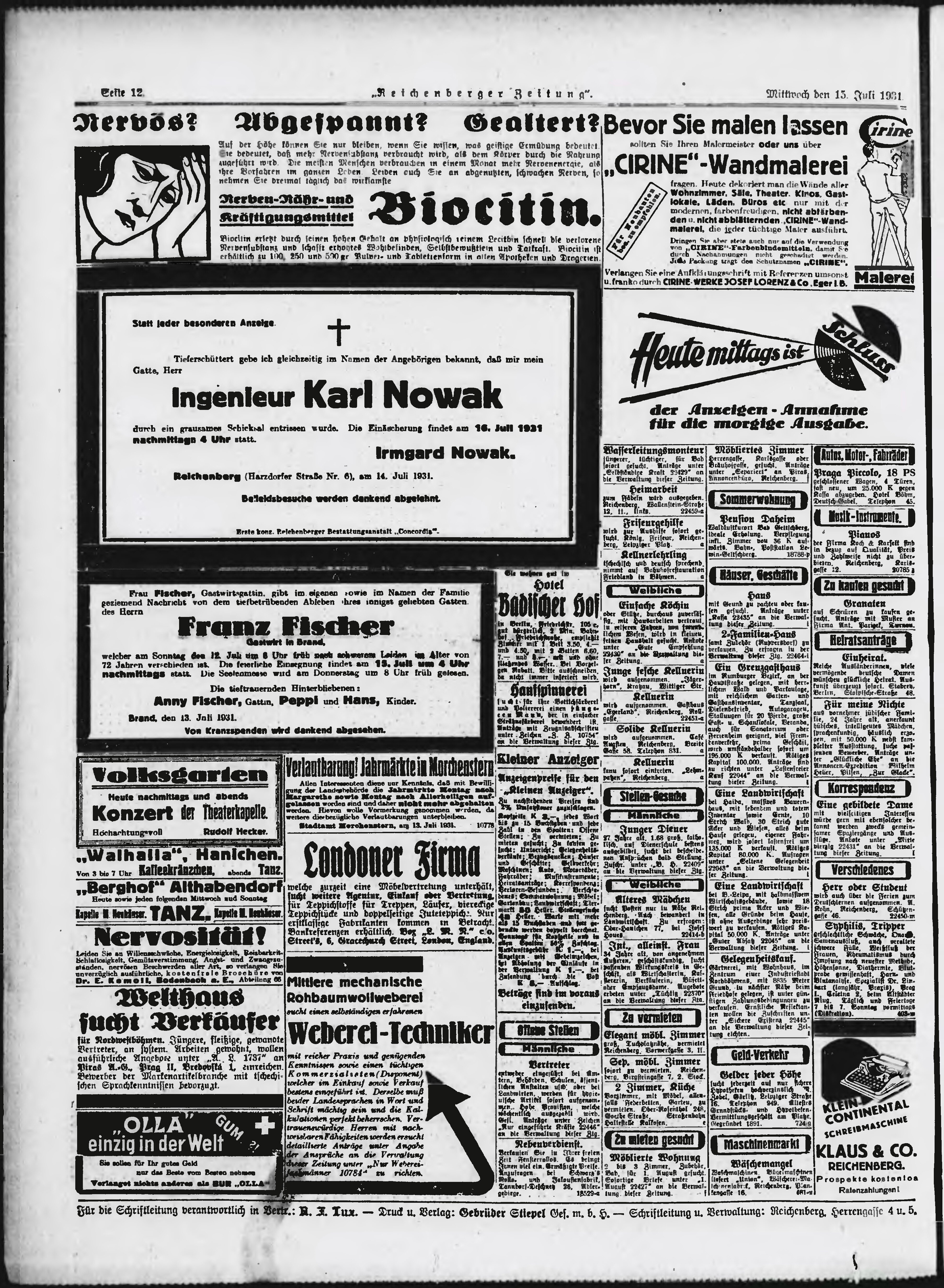 * Datum vydání výtisku: 15.7.1931 Číslo výtisku: 163 Poznámky k výtisku: ranní vydání;