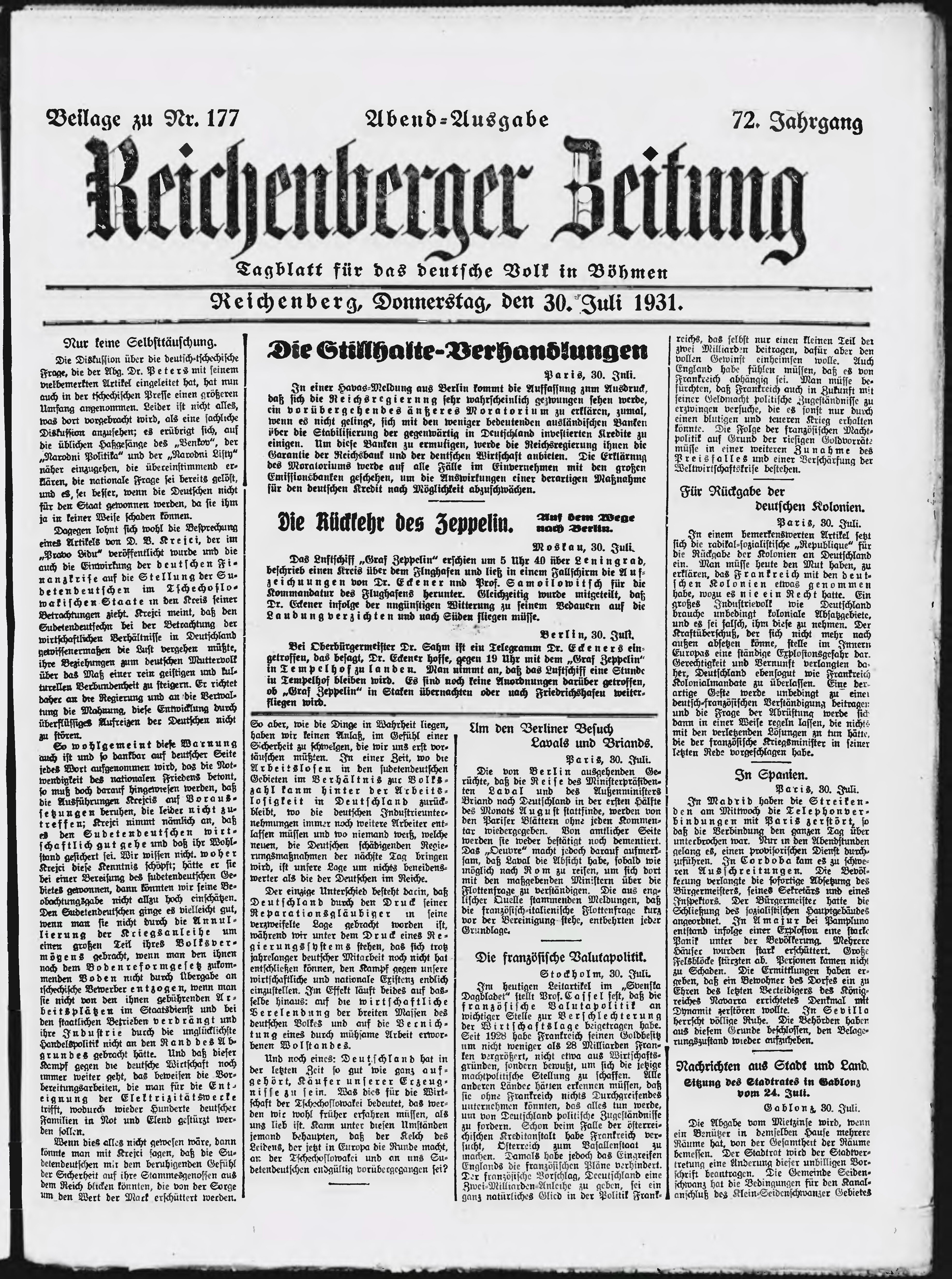 * Datum vydání výtisku: 30.7.1931 Číslo výtisku: 177 Typ výtisku: příloha Poznámky k výtisku: večerní vydání;