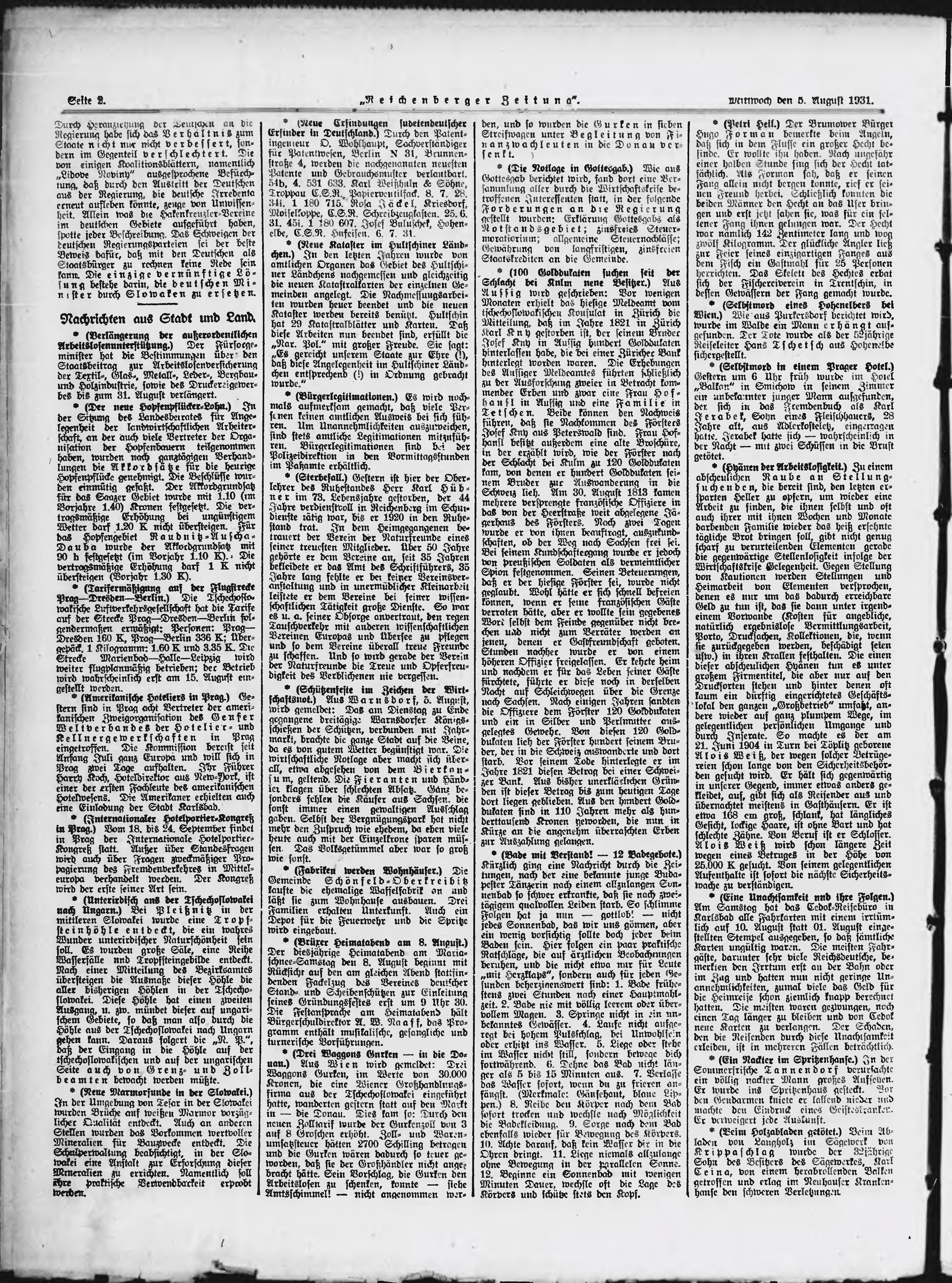 * Datum vydání výtisku: 5.8.1931 Číslo výtisku: 182 Typ výtisku: příloha Poznámky k výtisku: večerní vydání;