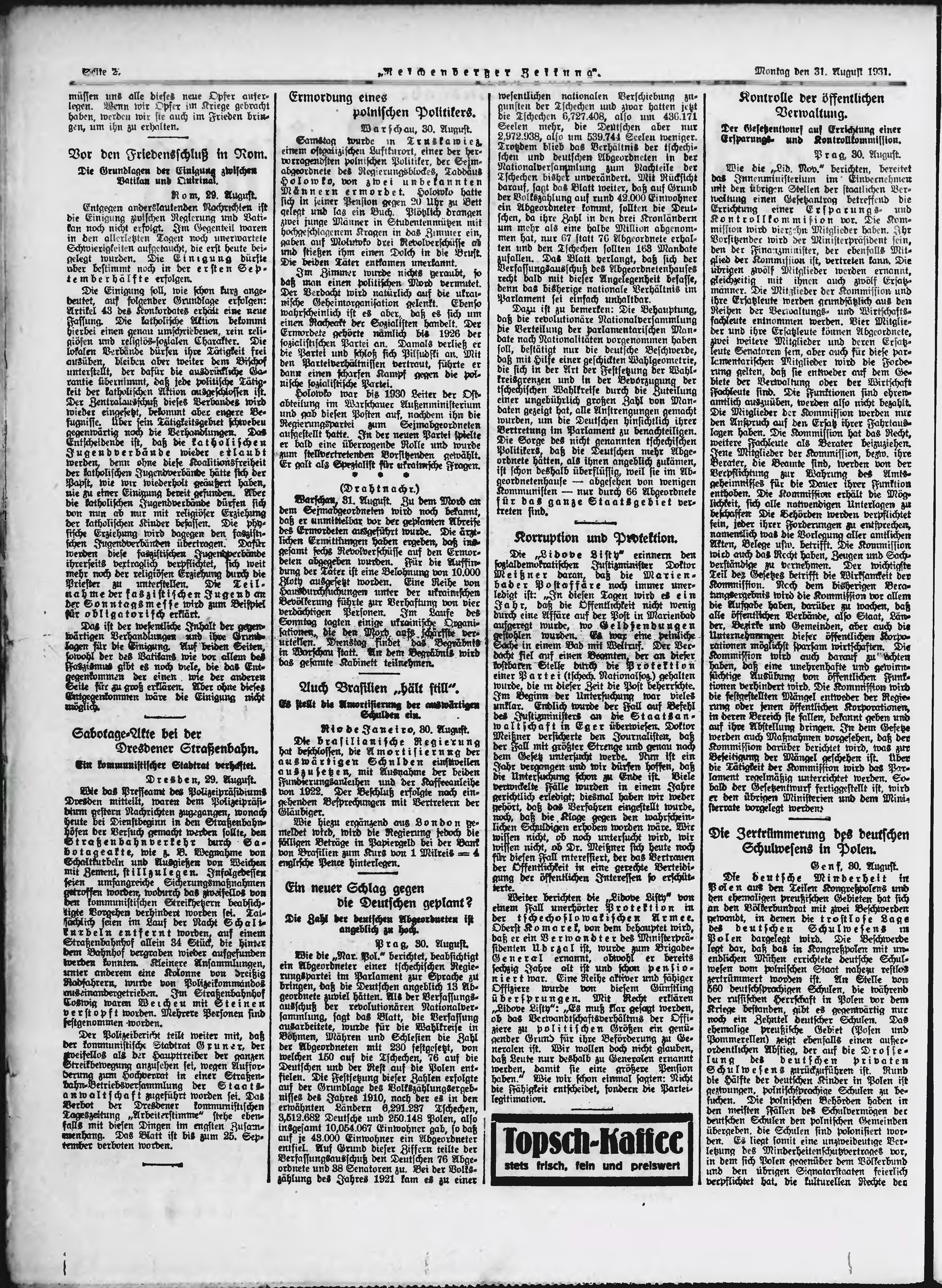 * Datum vydání výtisku: 31.8.1931 Číslo výtisku: 203 Typ výtisku: příloha Poznámky k výtisku: večerní vydání;