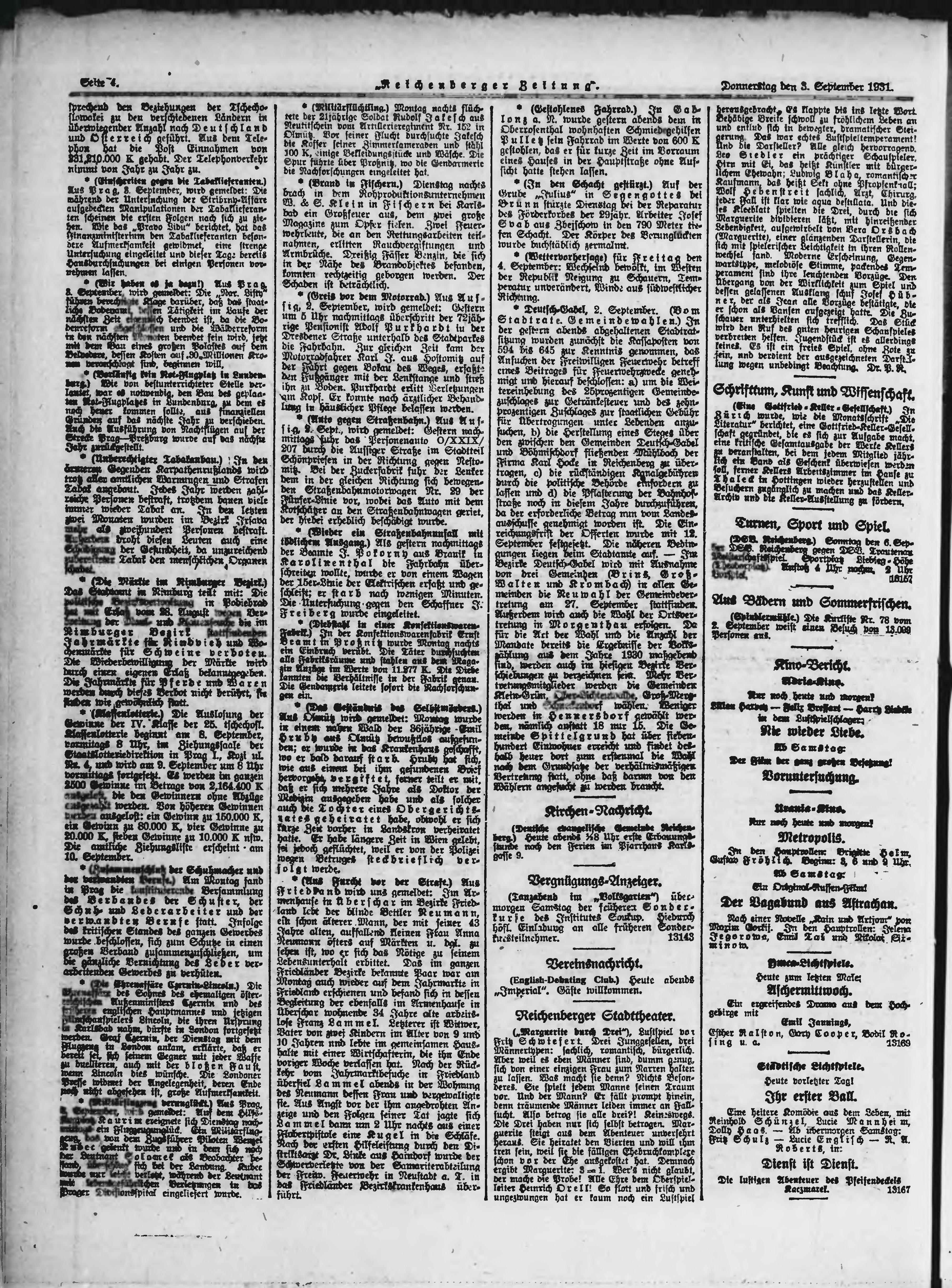 * Datum vydání výtisku: 3.9.1931 Číslo výtisku: 206 Typ výtisku: příloha Poznámky k výtisku: večerní vydání;