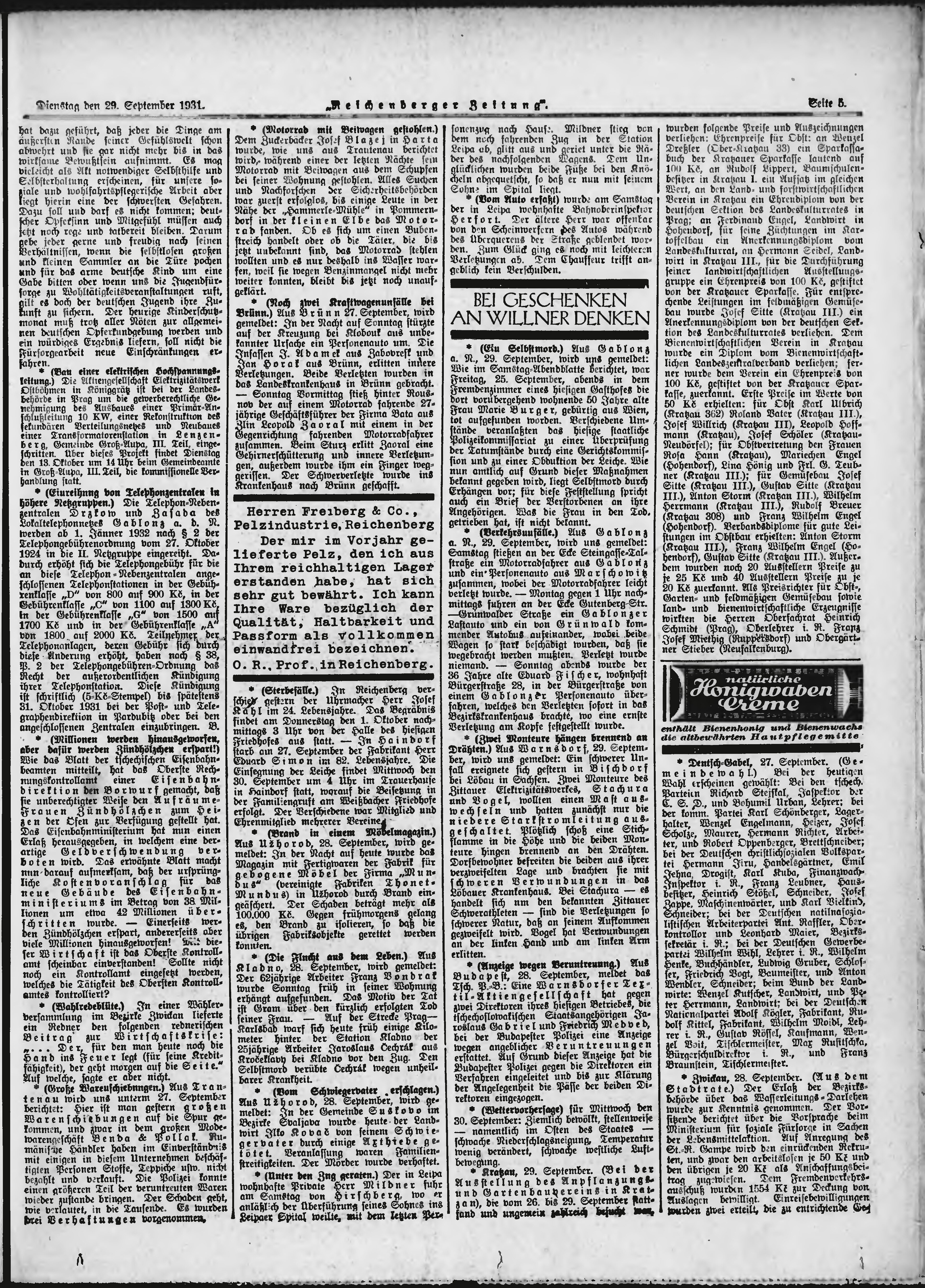 * Datum vydání výtisku: 29.9.1931 Číslo výtisku: 228 Typ výtisku: příloha Poznámky k výtisku: večerní vydání;