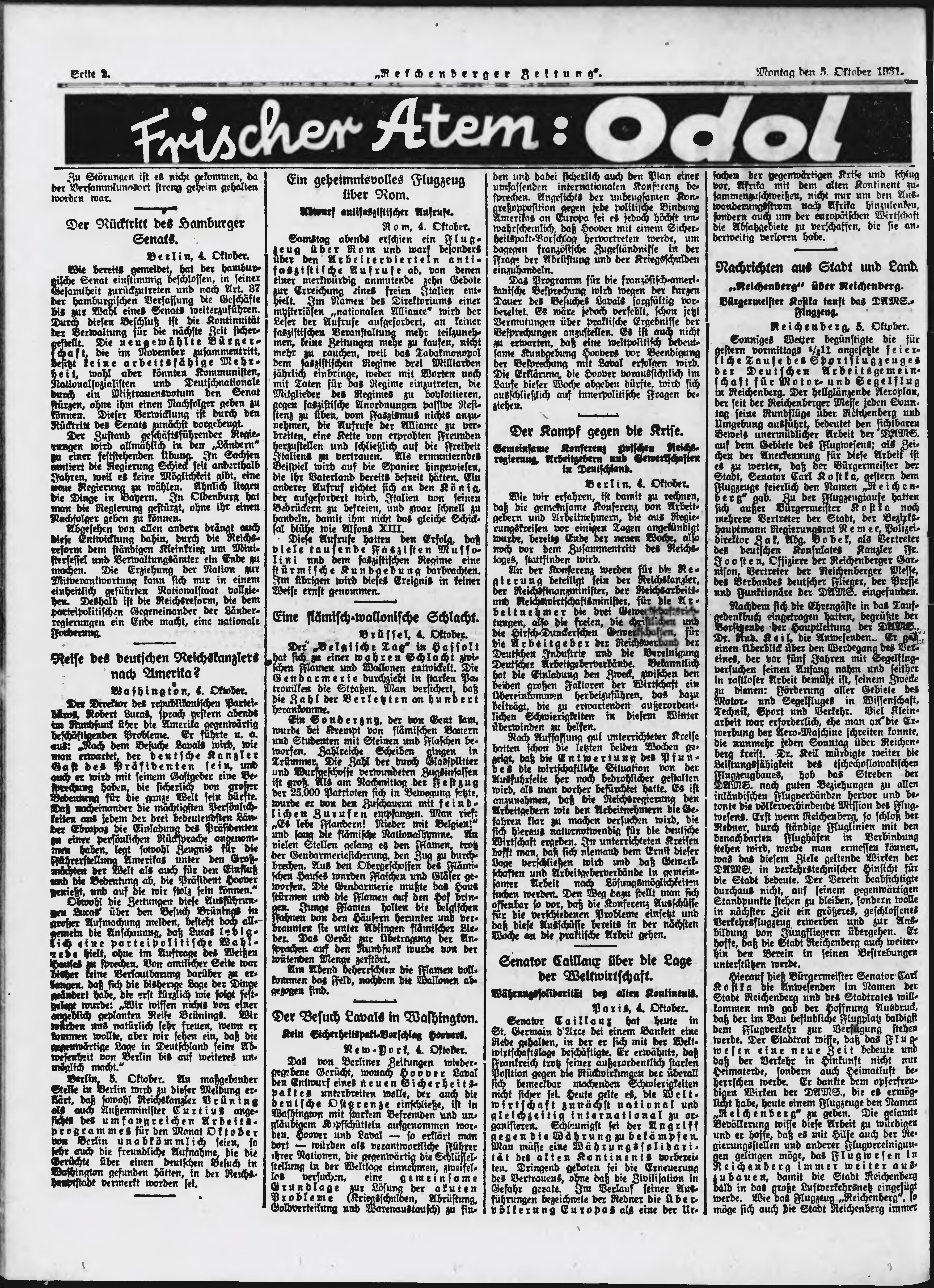 * Datum vydání výtisku: 5.10.1931 Číslo výtisku: 233 Typ výtisku: příloha Poznámky k výtisku: večerní vydání;
