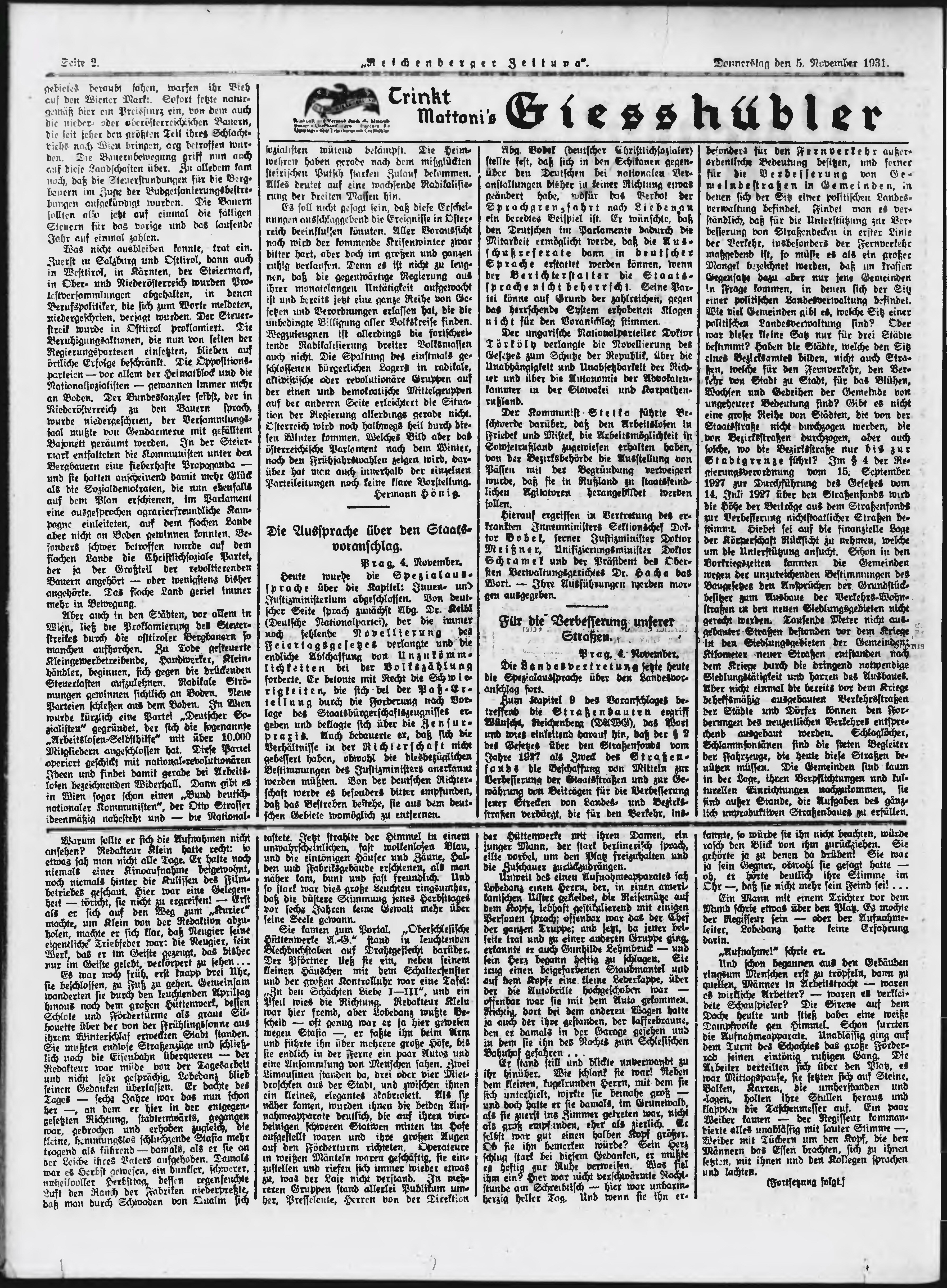 * Datum vydání výtisku: 5.11.1931 Číslo výtisku: 258 Poznámky k výtisku: ranní vydání;