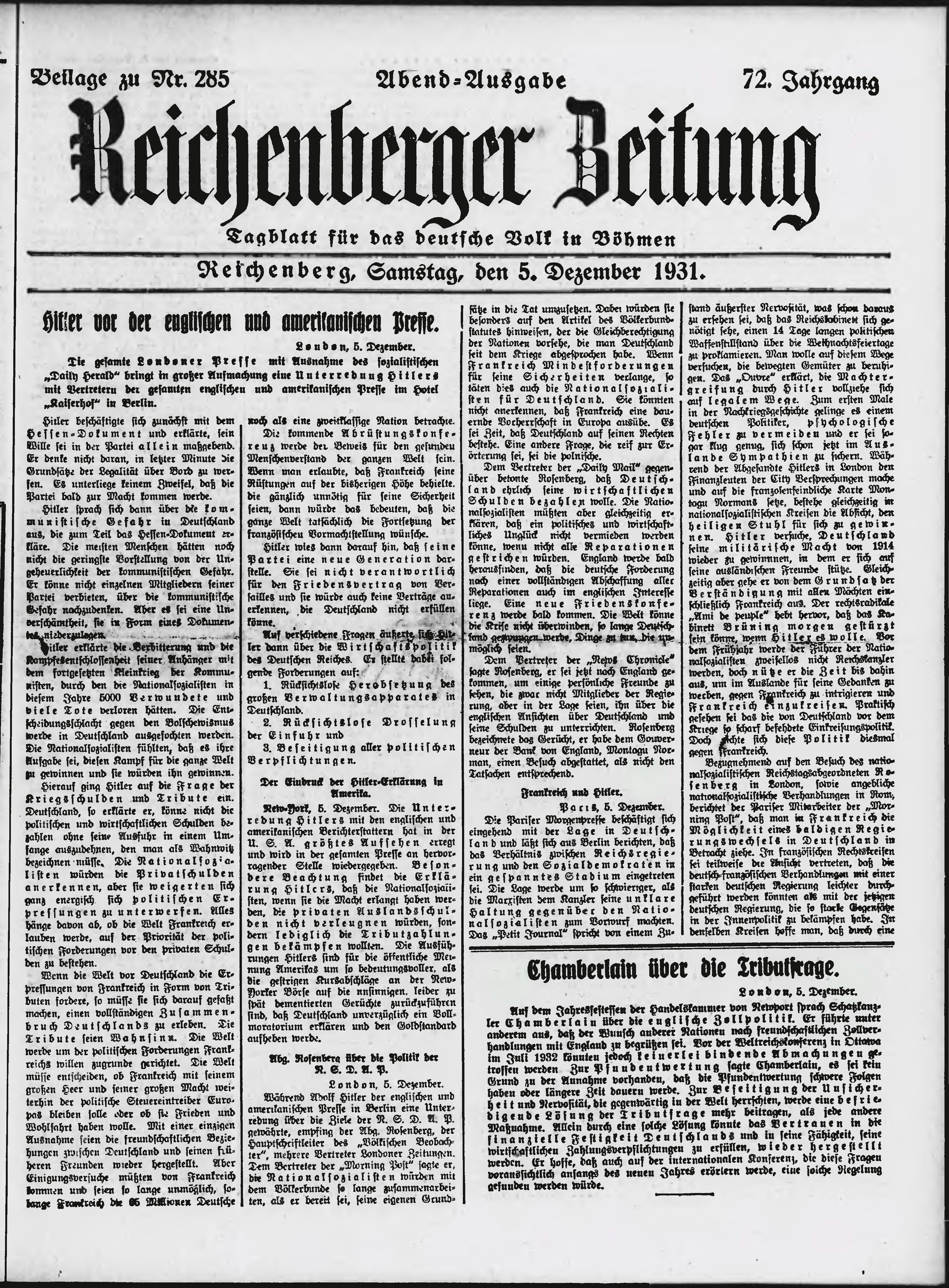 * Datum vydání výtisku: 5.12.1931 Číslo výtisku: 285 Typ výtisku: příloha Poznámky k výtisku: večerní vydání;