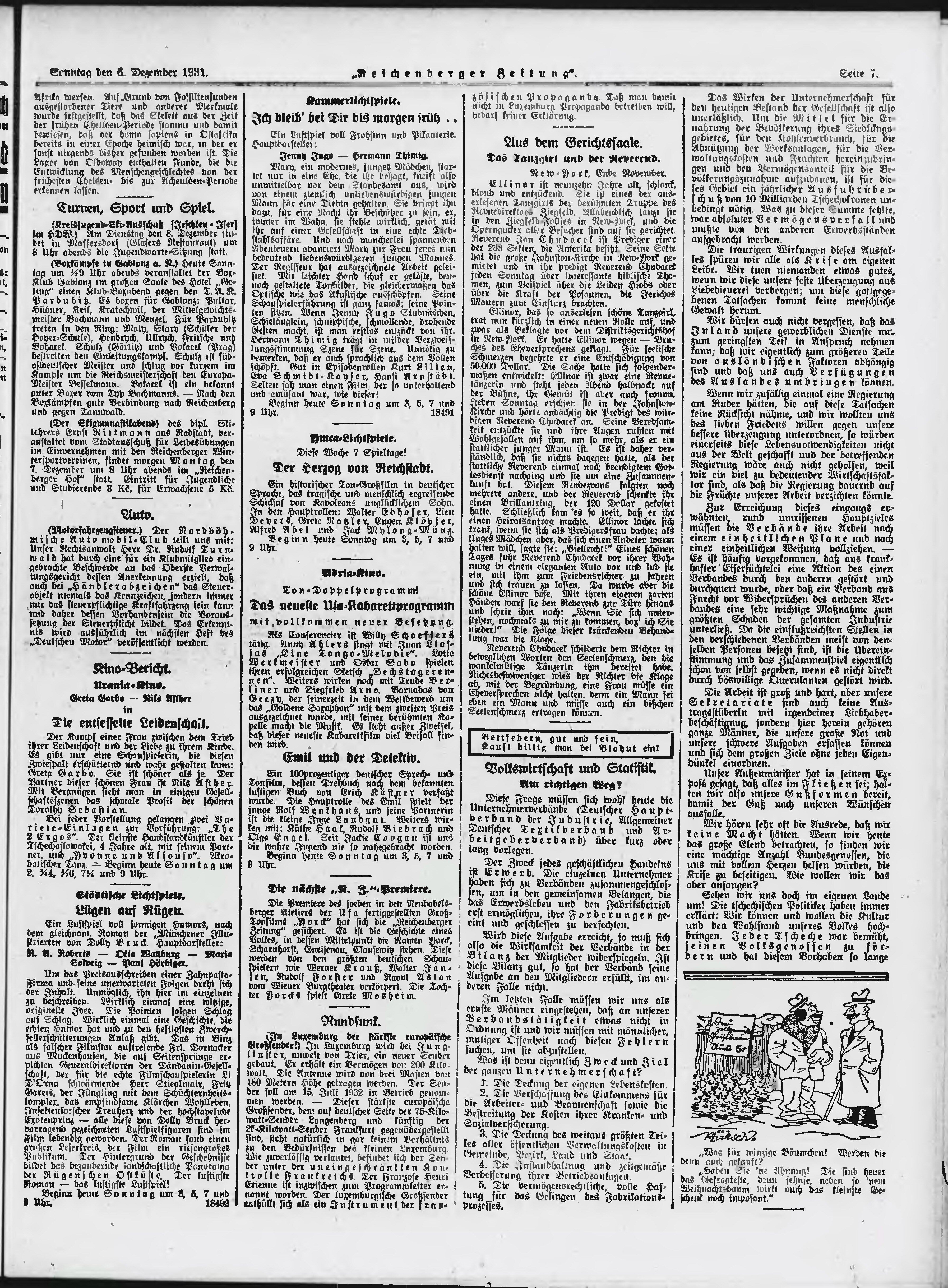 * Datum vydání výtisku: 6.12.1931 Číslo výtisku: 285 Poznámky k výtisku: ranní vydání;