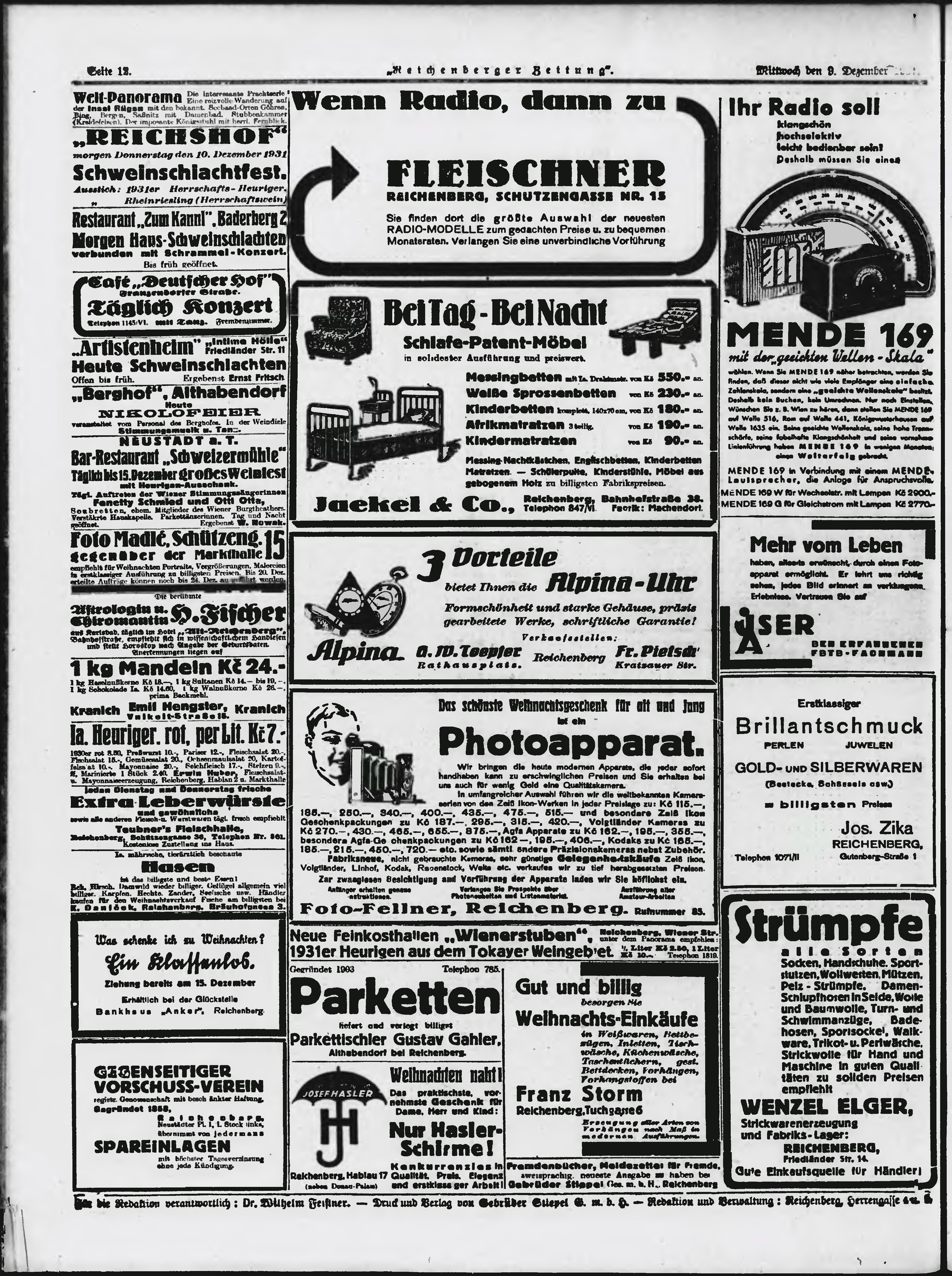 * Datum vydání výtisku: 9.12.1931 Číslo výtisku: 288 Typ výtisku: příloha Poznámky k výtisku: večerní vydání;