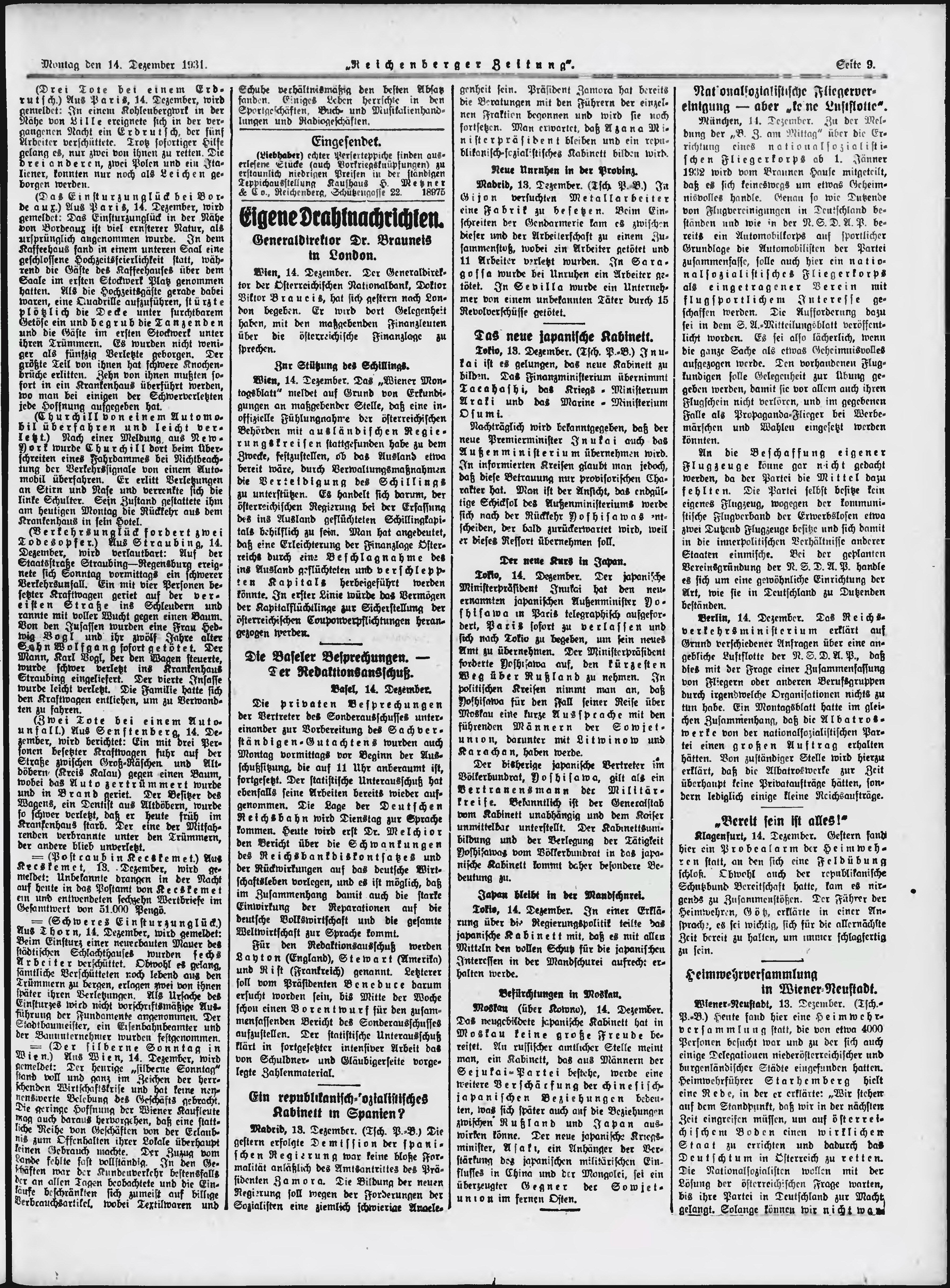 * Datum vydání výtisku: 14.12.1931 Číslo výtisku: 292 Typ výtisku: příloha Poznámky k výtisku: večerní vydání;