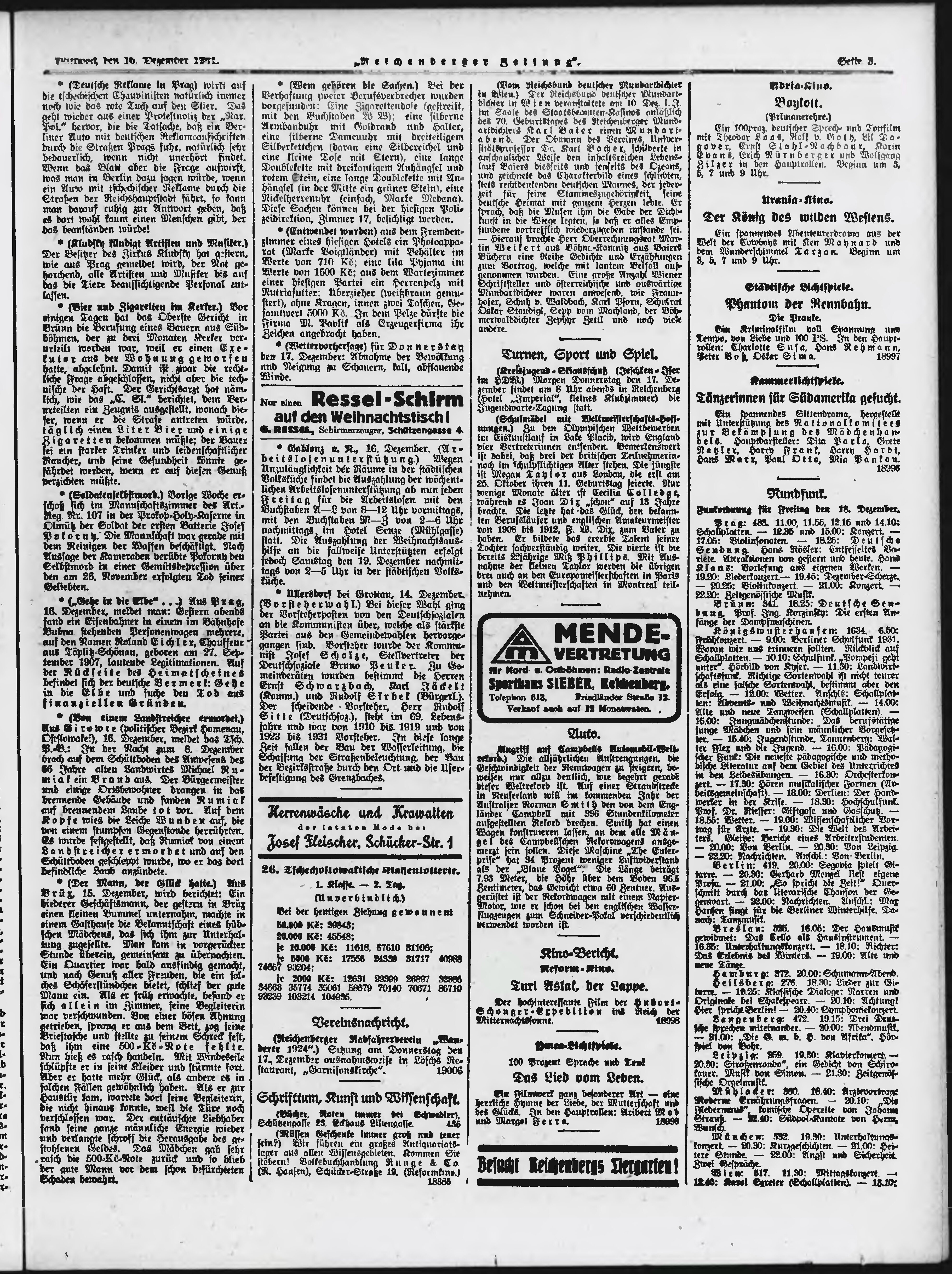 * Datum vydání výtisku: 16.12.1931 Číslo výtisku: 294 Typ výtisku: příloha Poznámky k výtisku: večerní vydání;