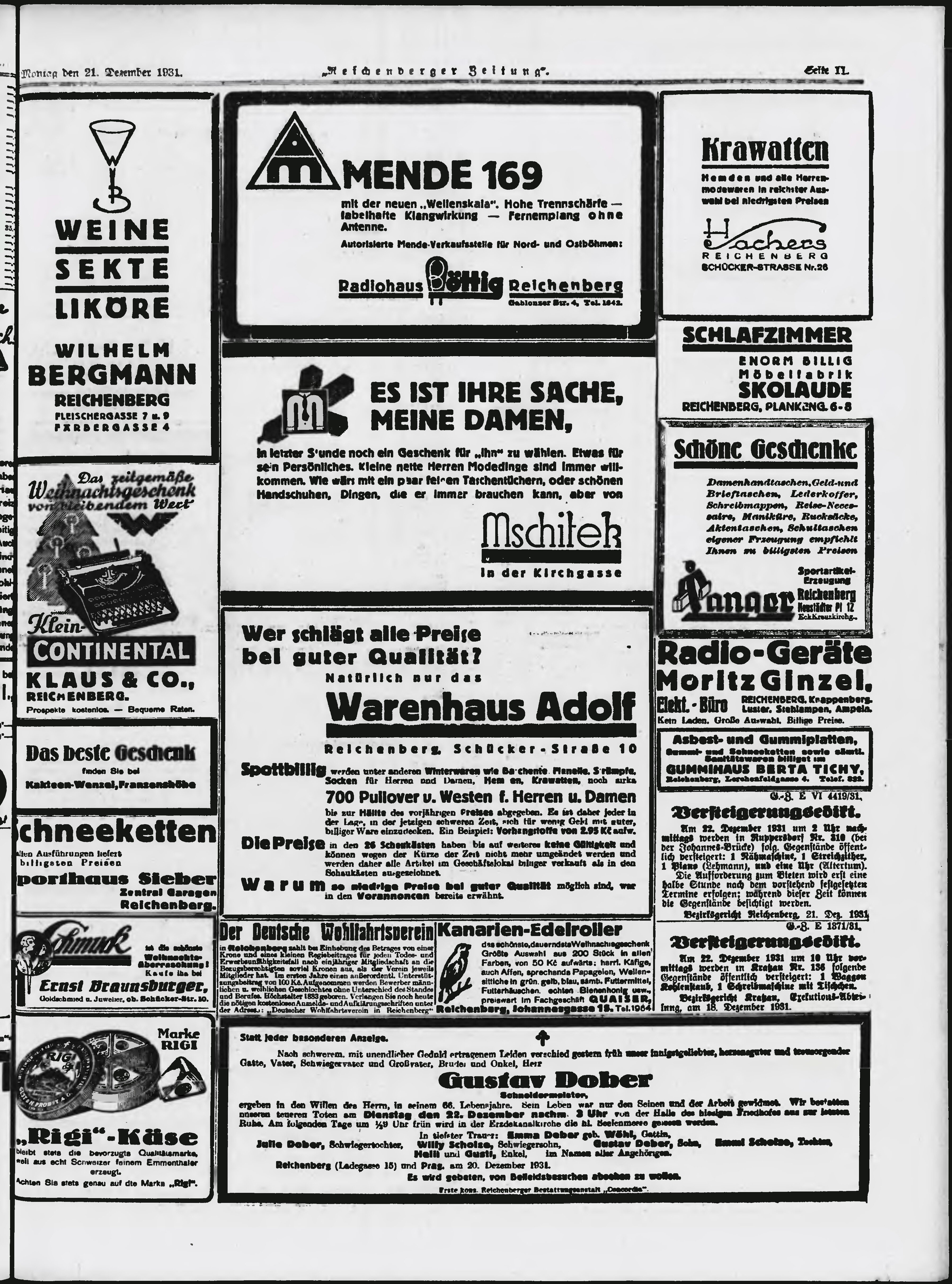 * Datum vydání výtisku: 21.12.1931 Číslo výtisku: 298 Typ výtisku: příloha Poznámky k výtisku: večerní vydání;