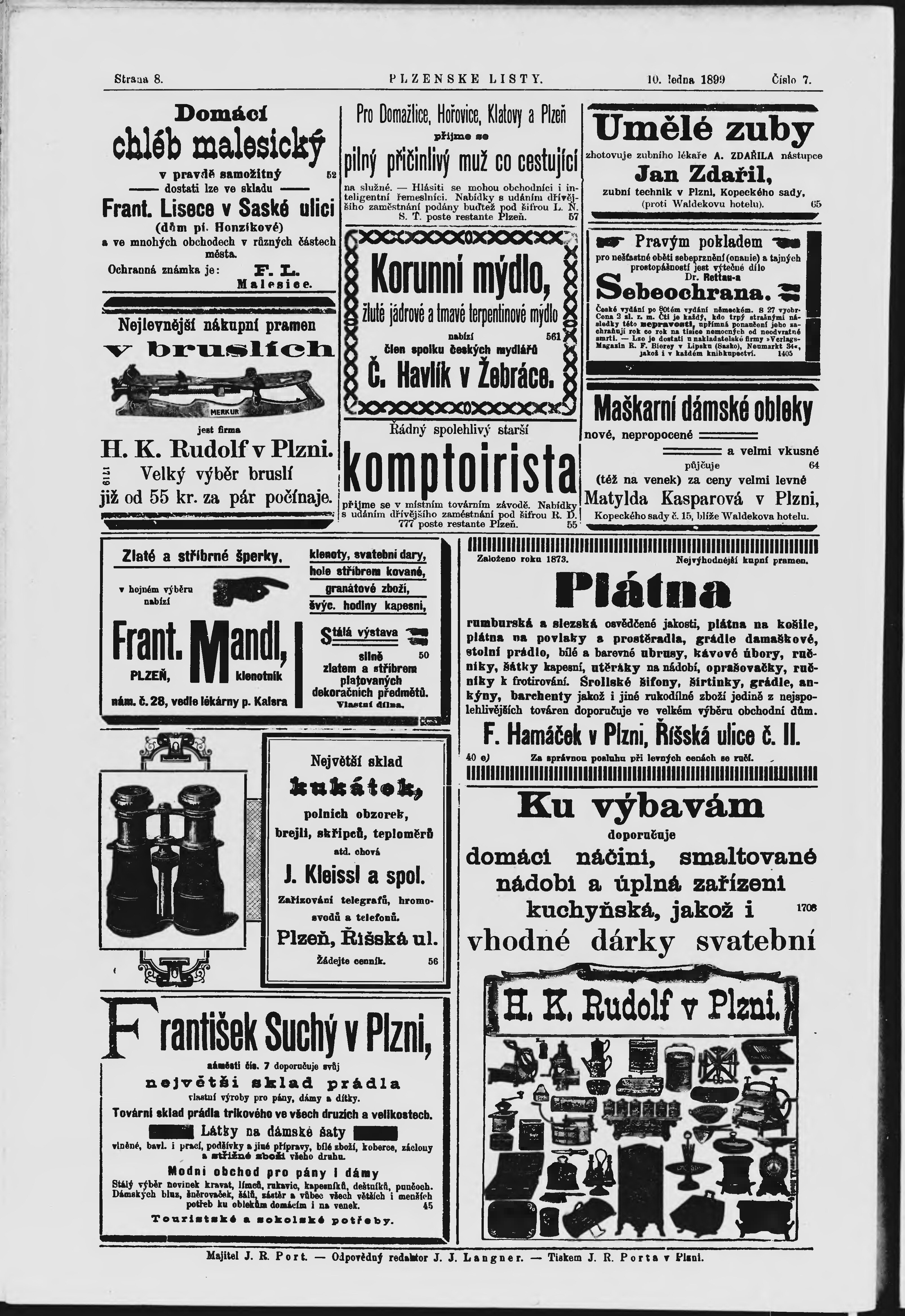* Datum vydání výtisku: 10.1.1899 Číslo výtisku: 7