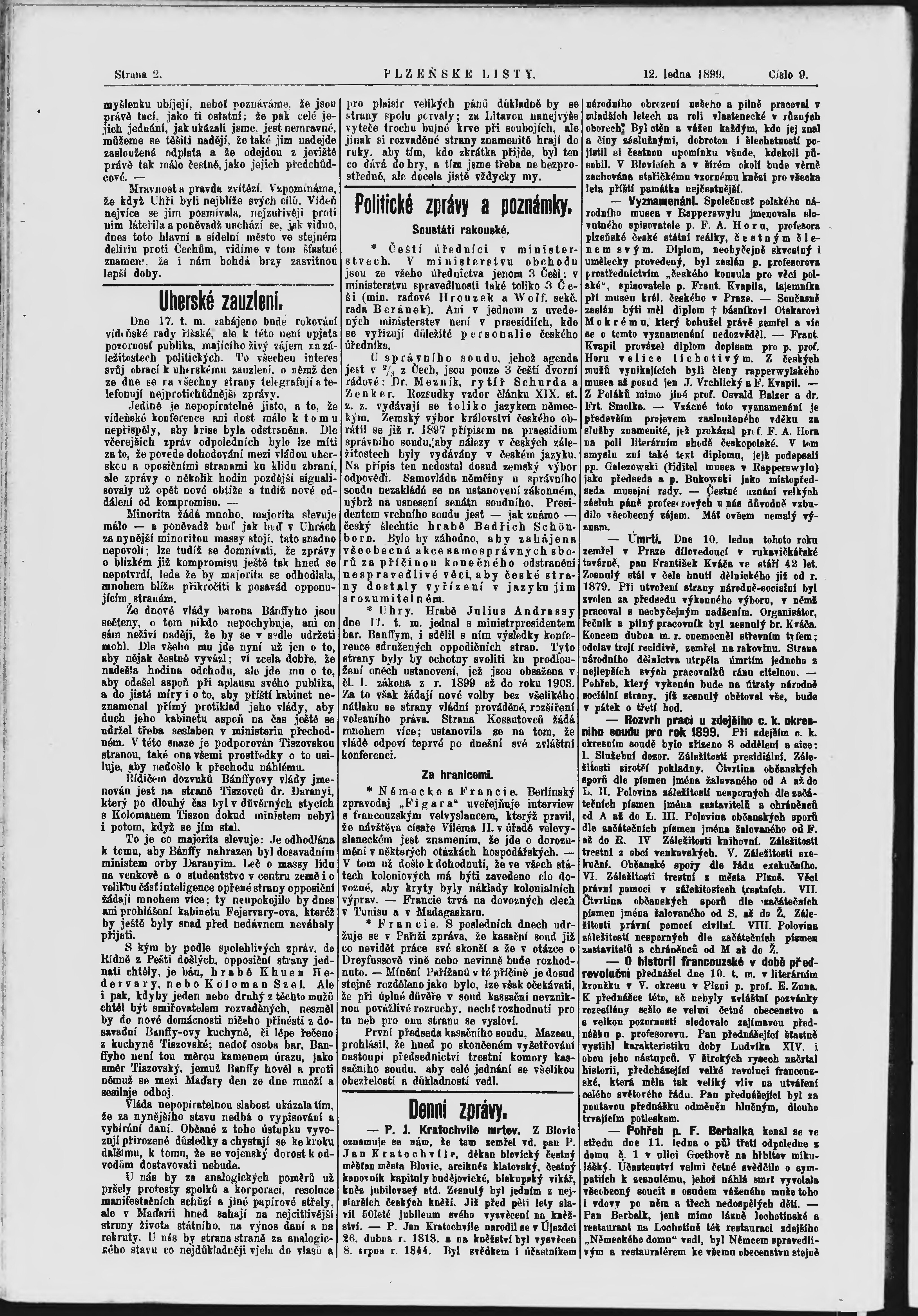 * Datum vydání výtisku: 12.1.1899 Číslo výtisku: 9